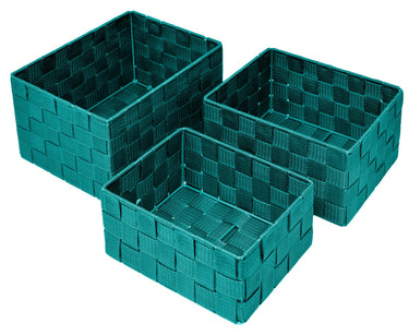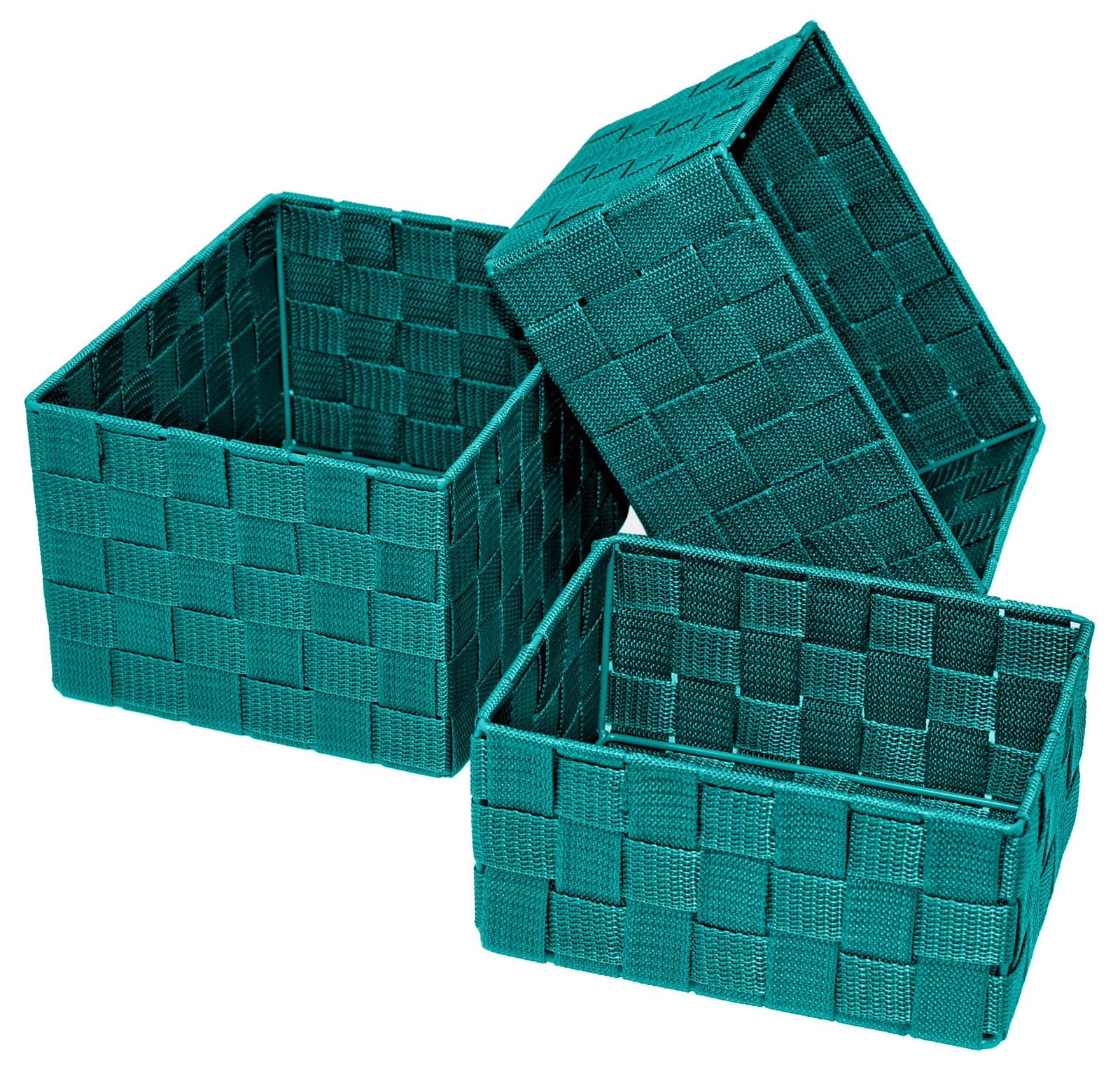 Badezimmer Körbchen Set eckig in Türkis 3er