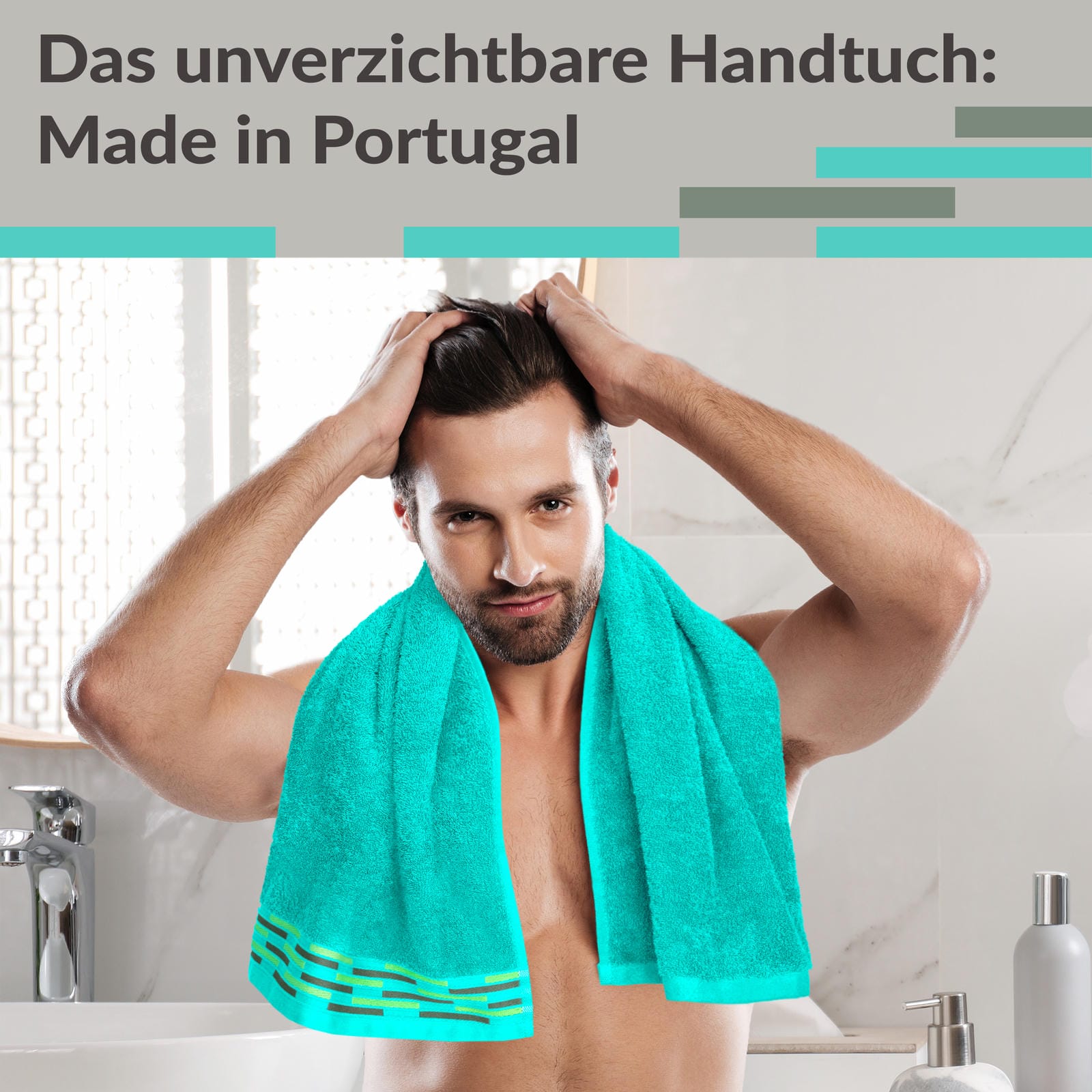 MADE IN PORTUGAL: Die hochwertige Fertigung garantiert eine lange Lebensdauer. Diese Handtücher Set 50x100 cm behalten ihre Form, bleiben angenehm weich und bieten auch nach langer Nutzung höchste Saugkraft und Stabilität.