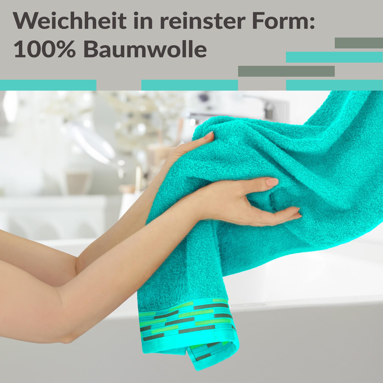 FRÖHLICHER FARBTON FÜR JEDEN TAG: Der frisches meeres - türkis Handtuch Baumwoll Farbton sorgt für eine angenehme Atmosphäre und setzt stilvolle Akzente. Die Frottee Handtücher 50x100 cm verleiht Ihrem Bad oder Gäste WC ein freundliches, einladendes Flair.