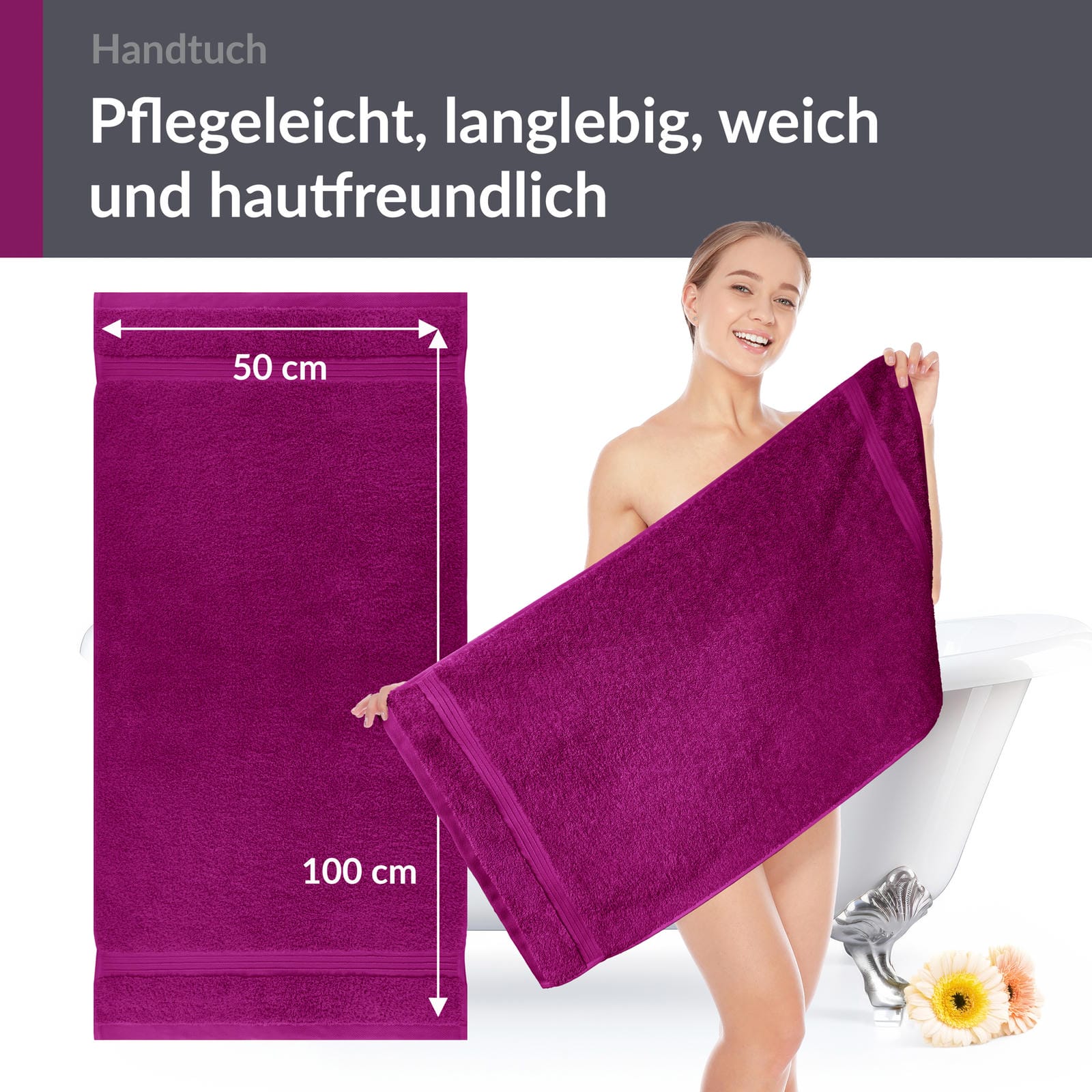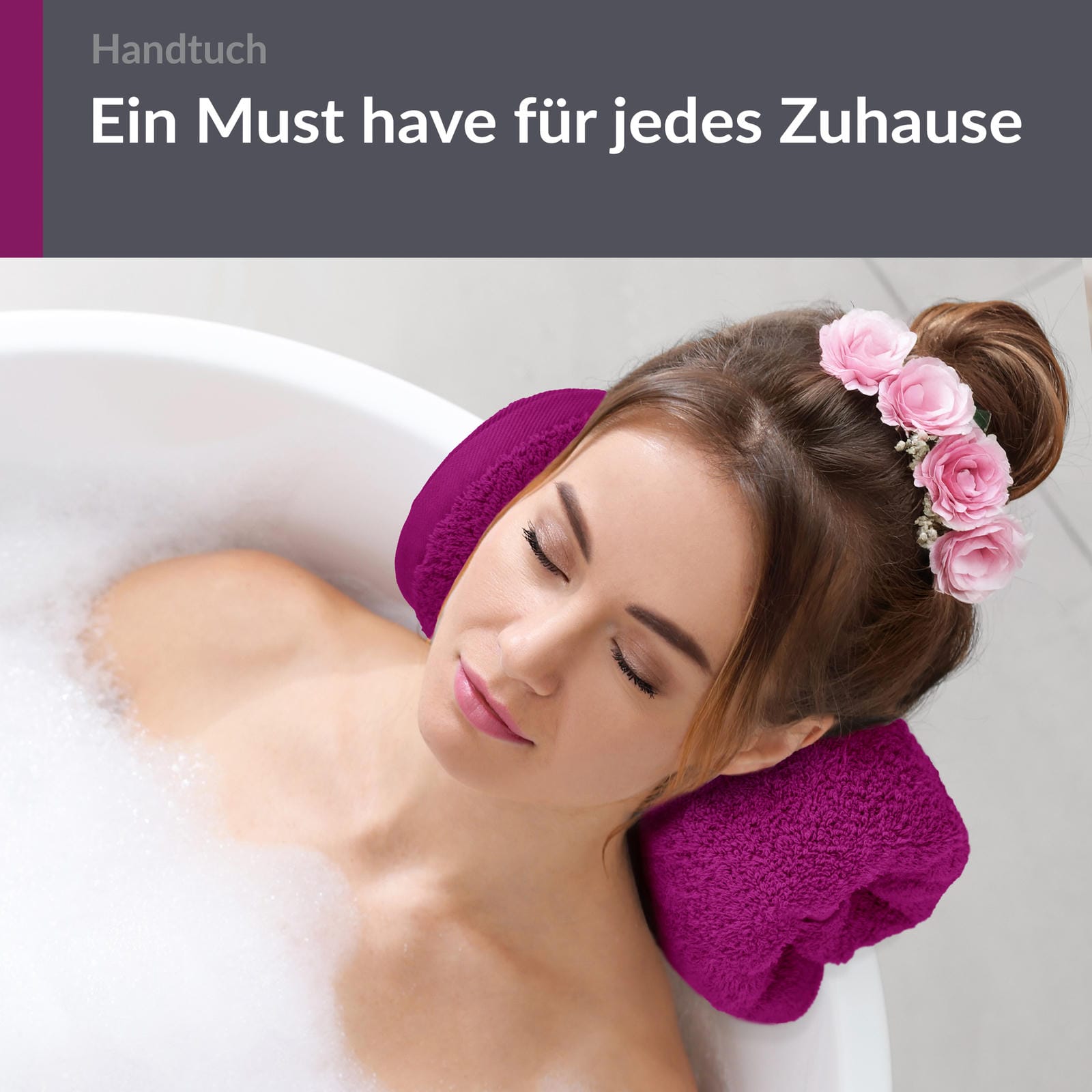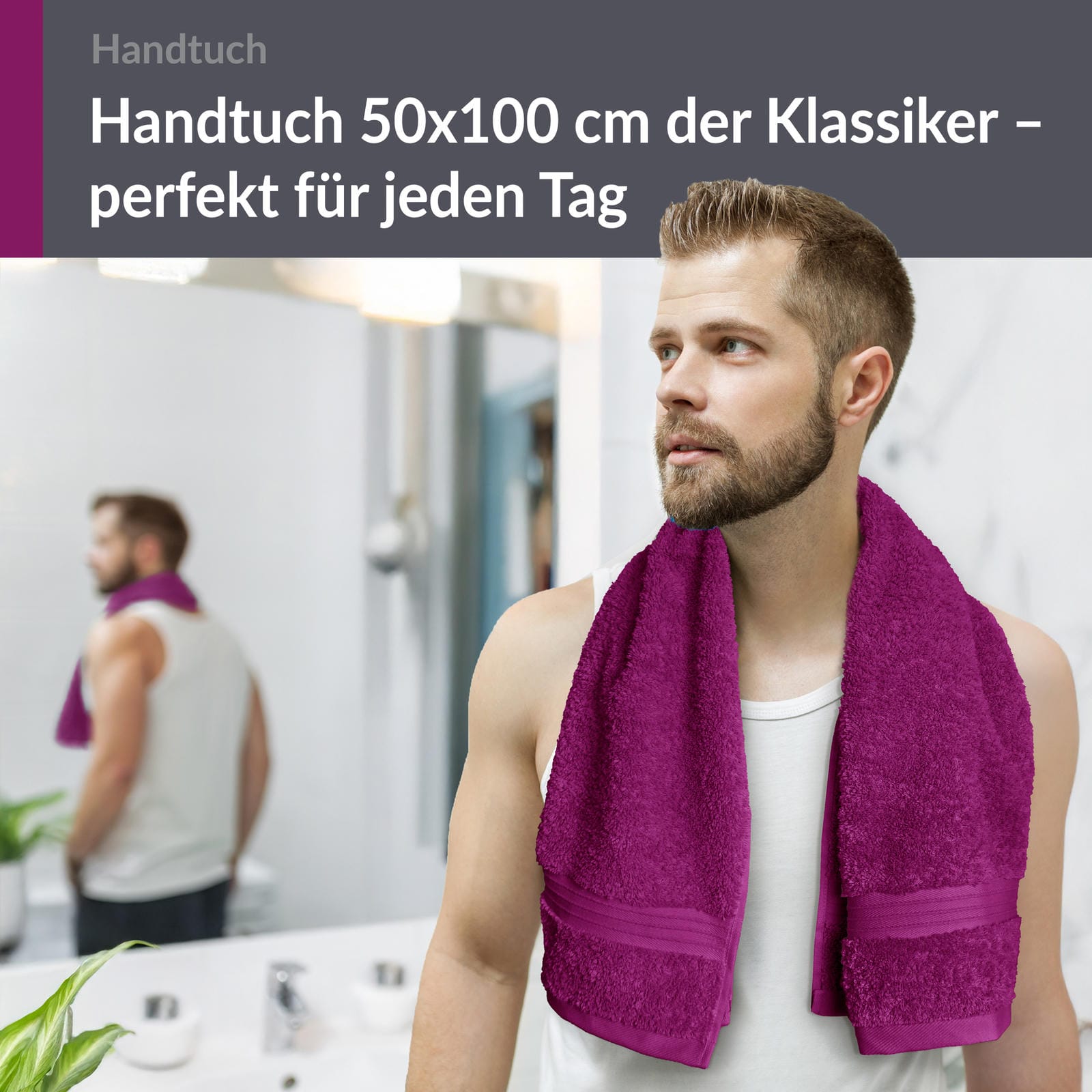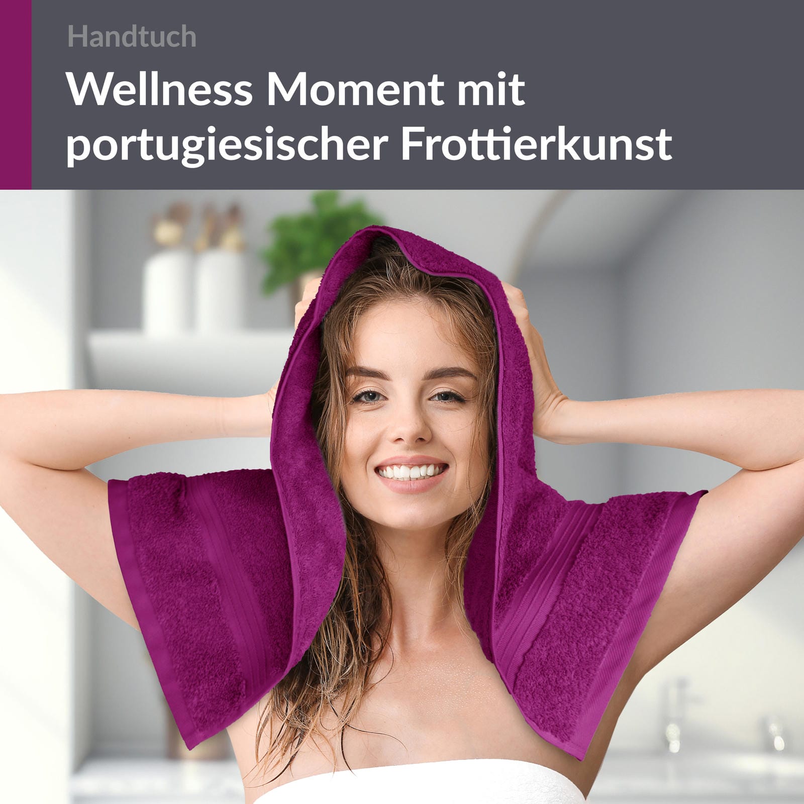 Ob als Badezimmer Zubehör oder für Sport, stets möchten Sie dieses weiche Frotteehandtuch ca. 50 x 100 cm in Orchidee Violett an Ihrer Seite wissen.