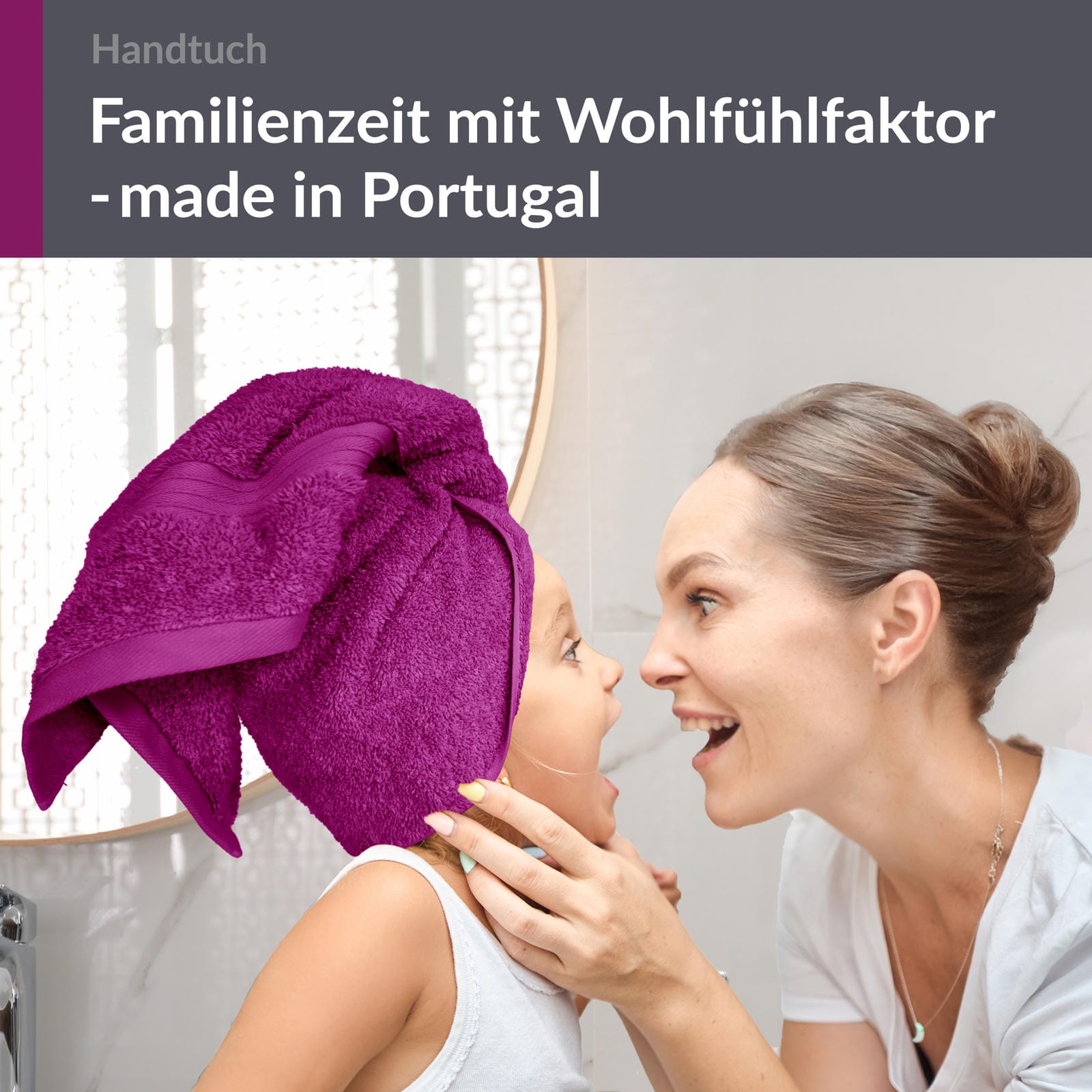 Flauschig weich schmiegt sich unser lila Baumwollhandtuch aus Frottee an Ihre Haut. Oder nutzen Sie dieses saugstarke Trockentuch als Kopfhandtuch.