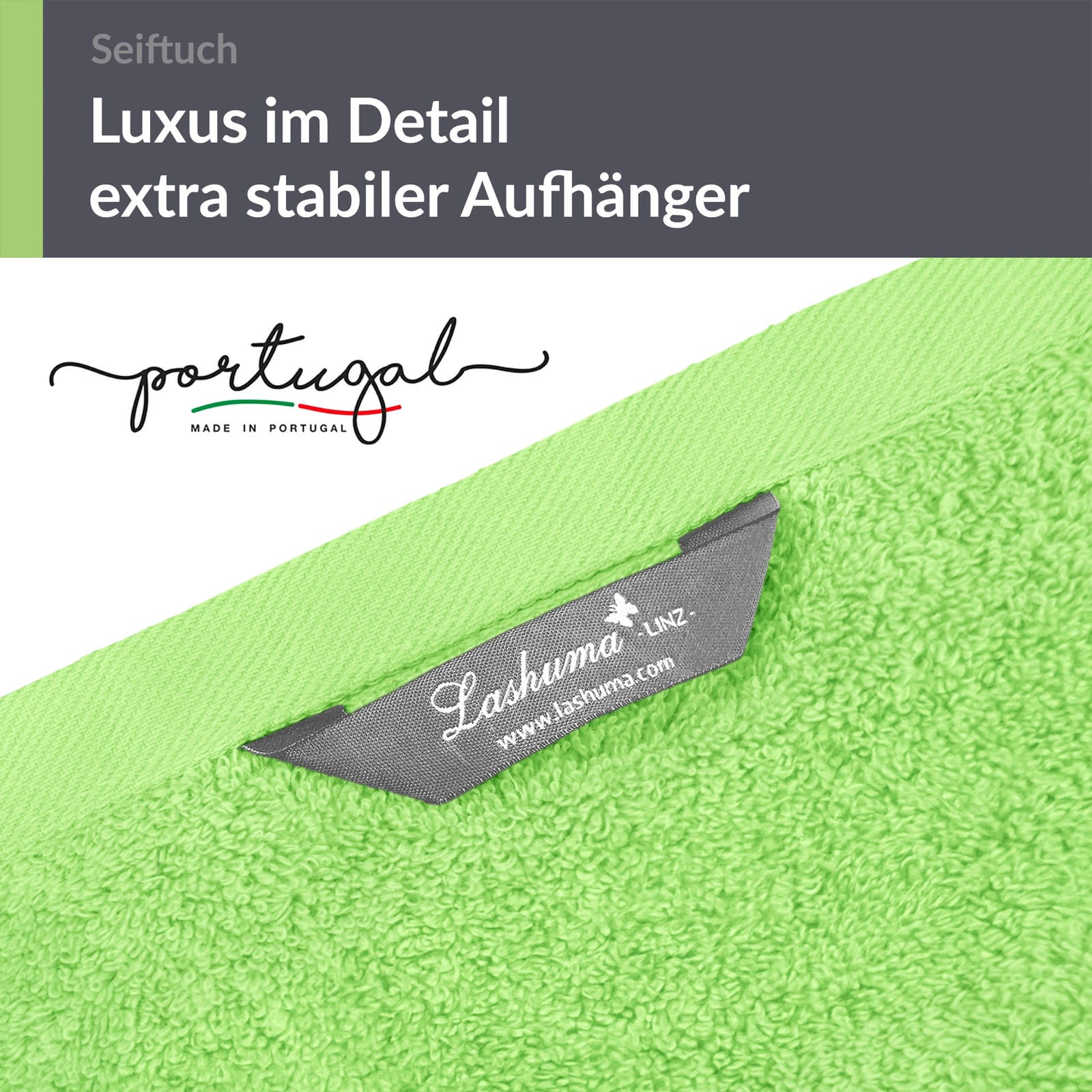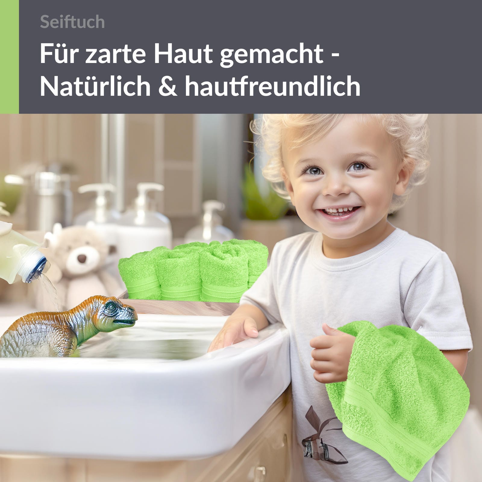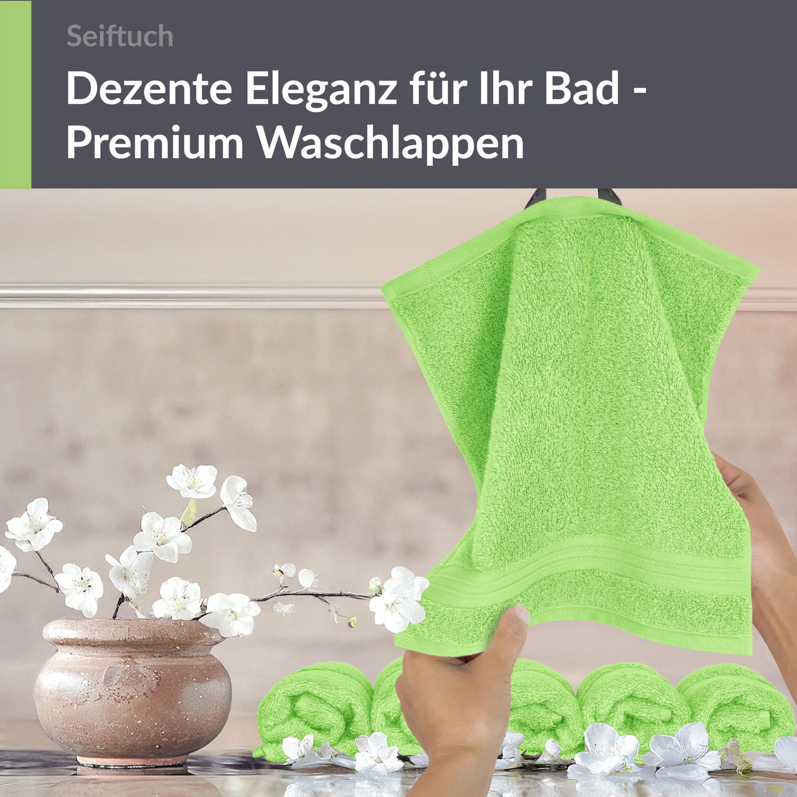 Hohe Qualität und optische Akzente ziehen mit den 6 Stück Seiftüchern ins Badezimmer ein! Erleben Sie bei diesen Uni Waschtüchern in Apfel Grün neue Wohlfühl Momente.