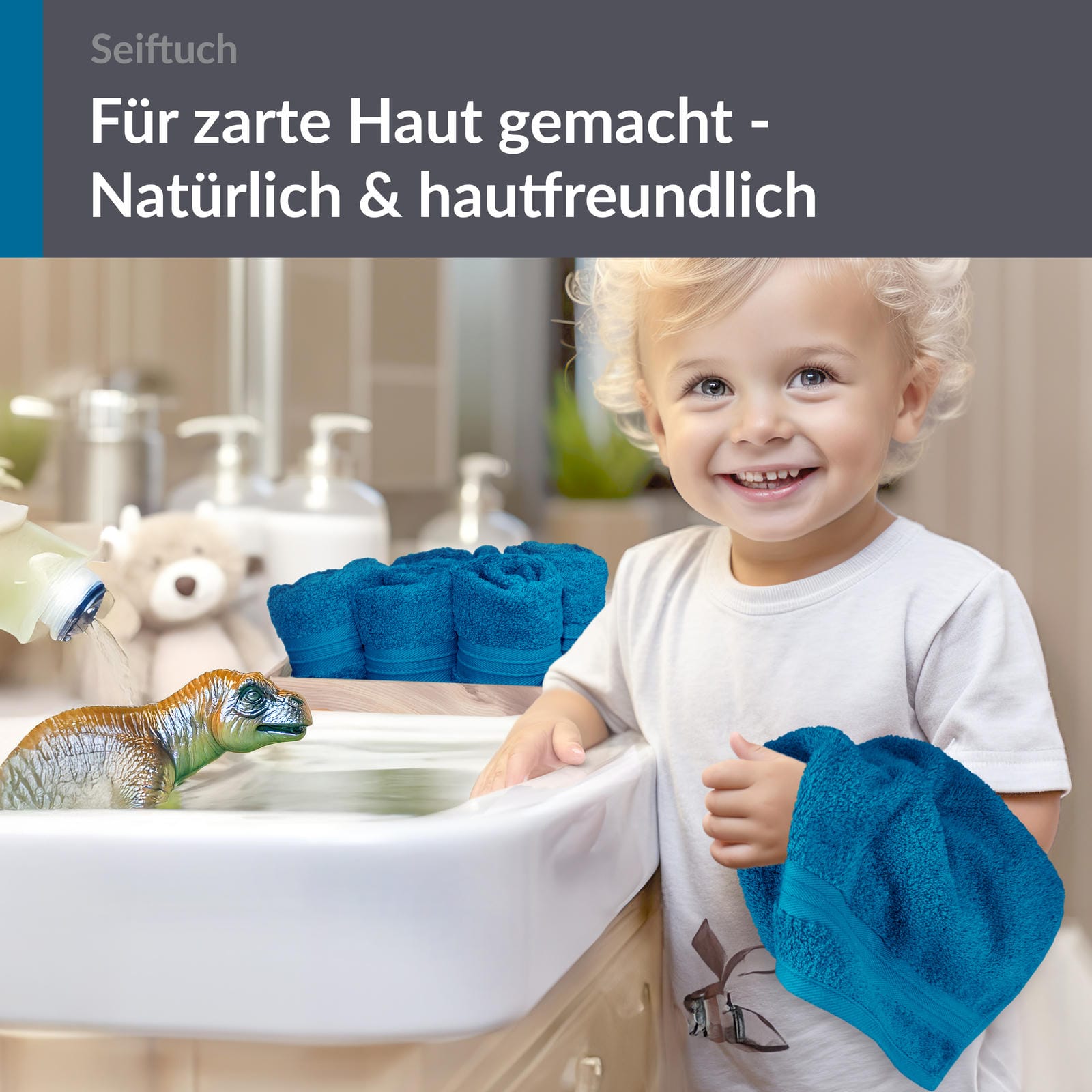 Seiftücher 30x30 cm, 6er Set Waschlappen Blau - Petrol