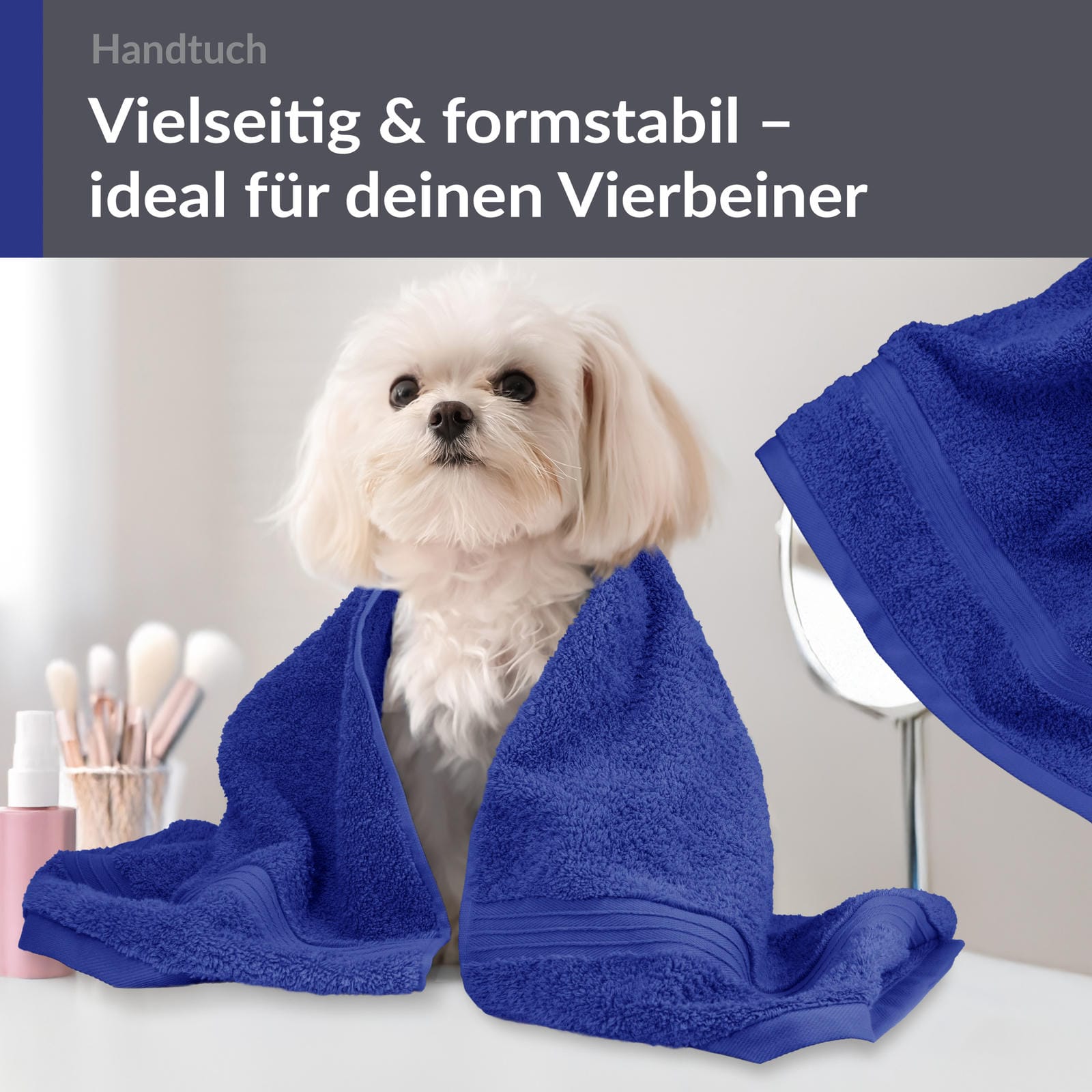 Dieses 2 teilige Handtücher Set wird Sie stets begeistern. Im Bad oder beim Sport sind die hochwertigen Frotteehandtücher in Königs Blau die perfekten Begleiter.