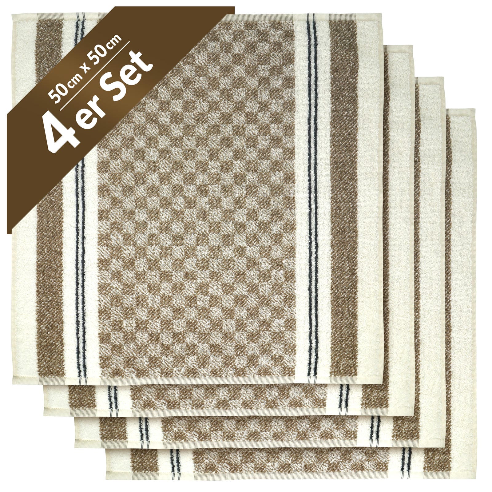 4er Frottee Küchenhandtücher 50x50 cm Streifen & Karo Beige - Grau