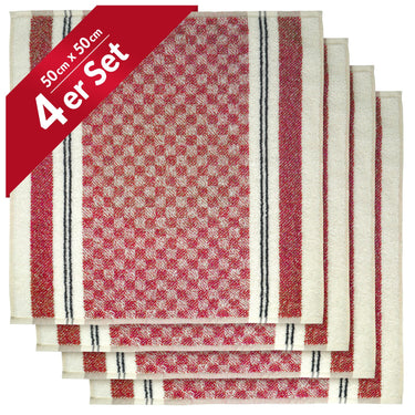 4er Frottee Küchenhandtücher 50x50 cm Streifen & Karo Rot - Grau