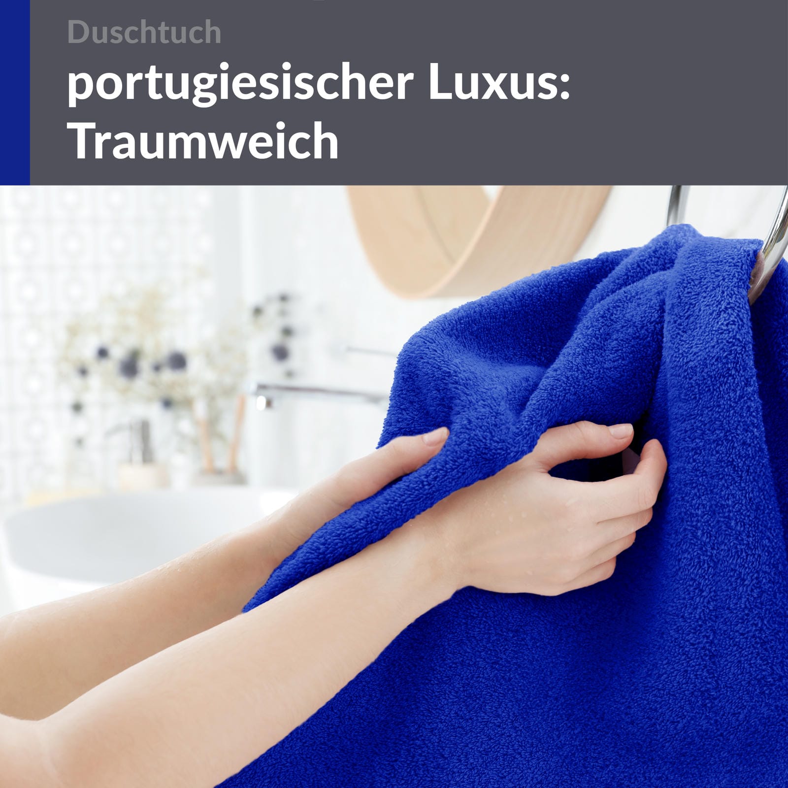 STRAHLENDES AZUR BLAU - Verleihen Sie Ihrem Badezimmer mit diesem hochwertigen Lashuma London Duschtuch 70x140 cm in intensivem Azur Blau eine frische und maritime Note, inspiriert vom klaren Himmel über dem Meer.