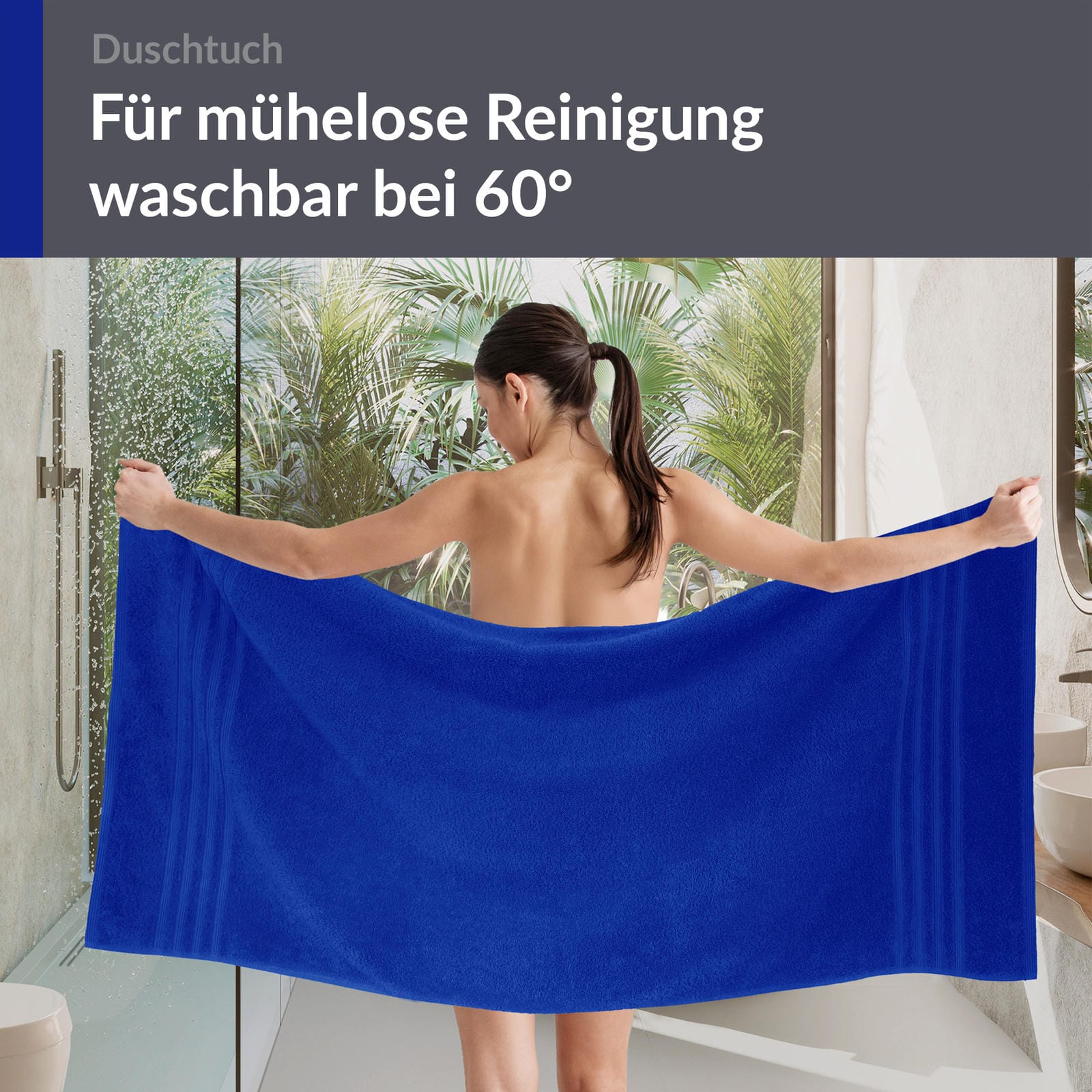 PFLEGELEICHT & MASCHINENWASCHBAR - Waschbar bei 60 Grad, trocknergeeignet und farbbeständig - dieses große Frotteetuch bleibt auch nach häufigem Waschen hygienisch sauber und leuchtend in seinem strahlenden Azur Blau.
