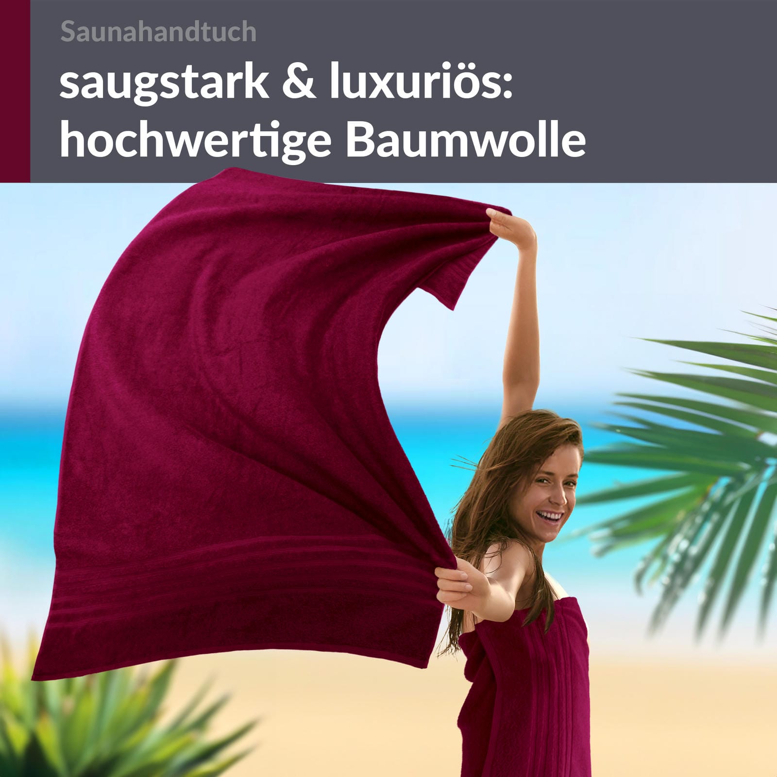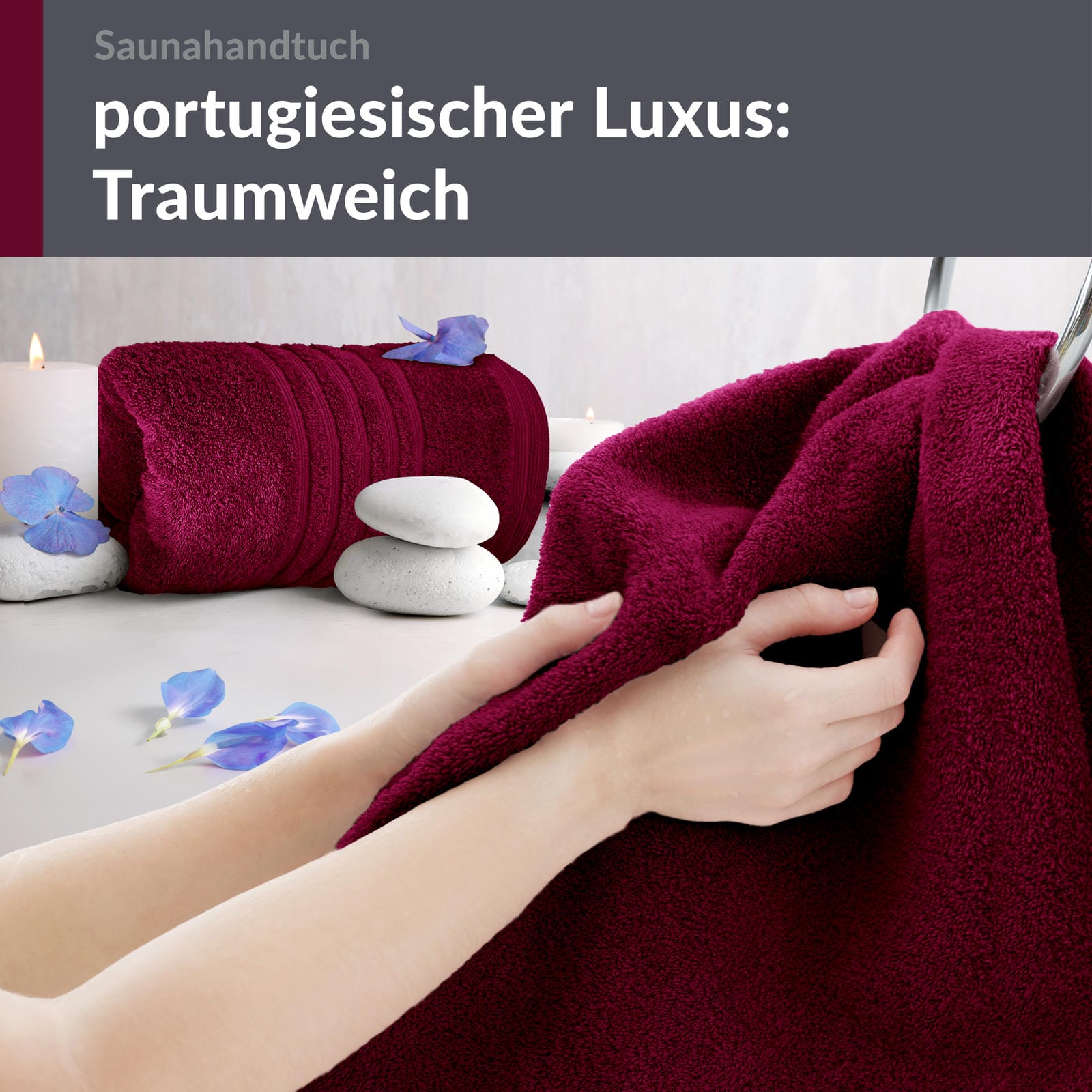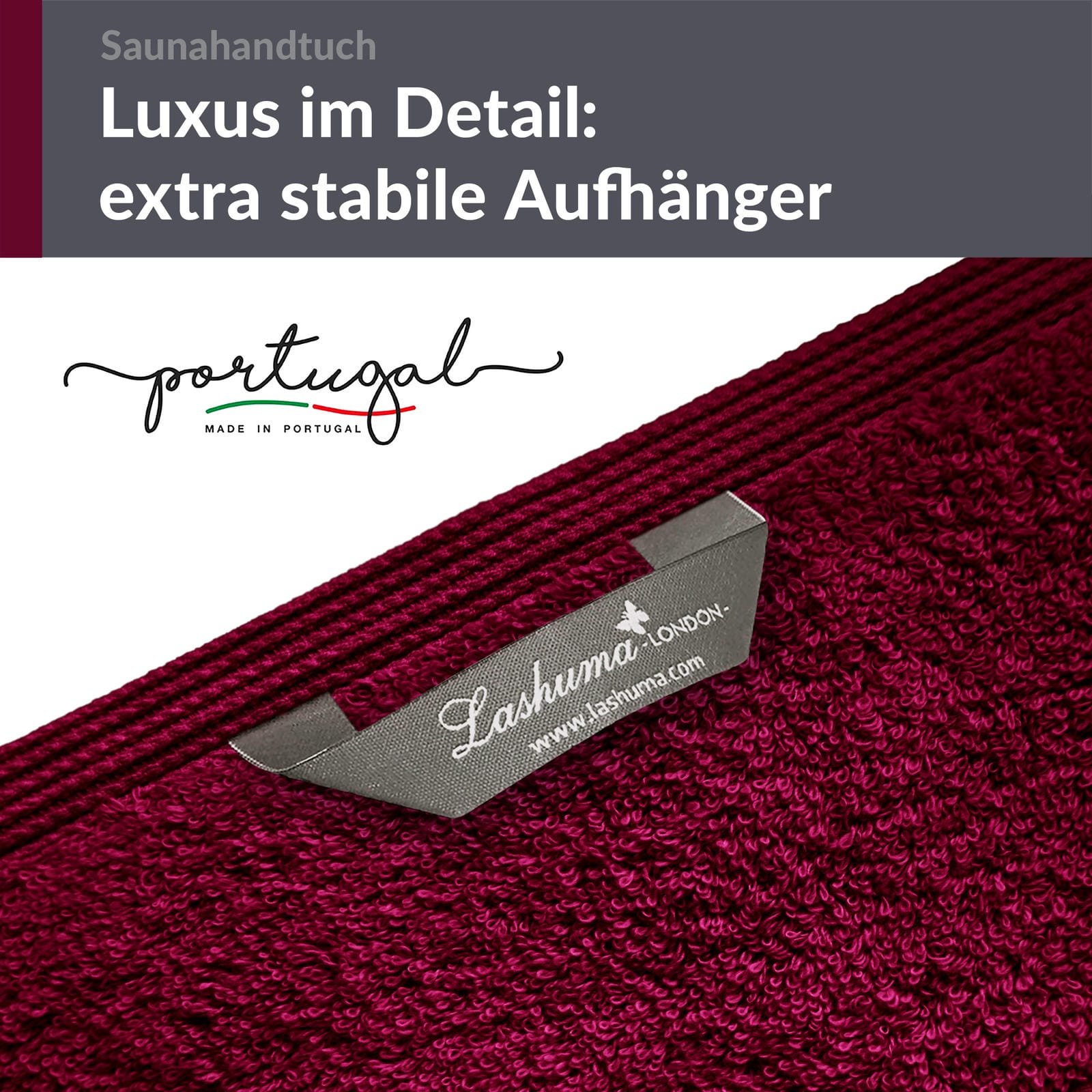PREMIUM QUALITÄT: In Portugal gefertigt, kombiniert das 80x200 cm große Saunahandtuch in Kirschrot erstklassige Verarbeitung aus reiner Baumwolle und einem lebendigen, warmen Rotton, der jeden Saunagang bereichert.