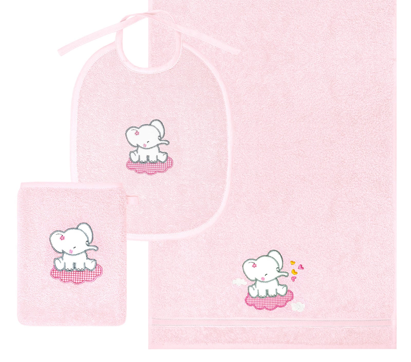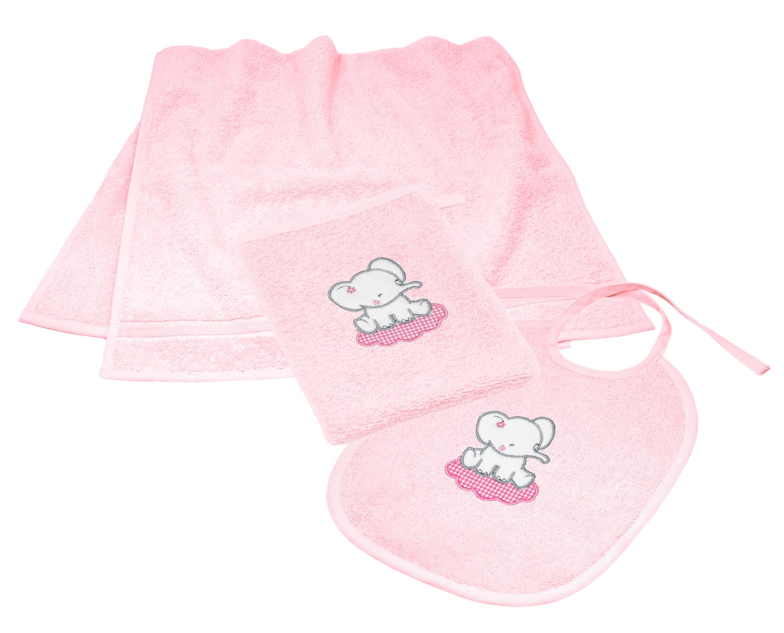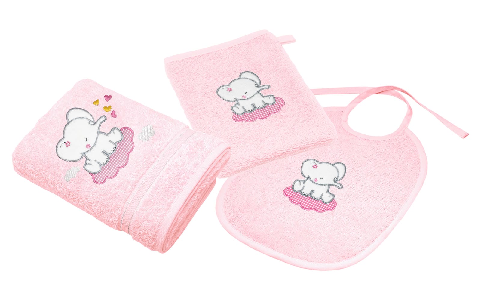 3er Set Baby Geschenkset für Mädchen und Jungen bestickt mit Elefant - Rosa