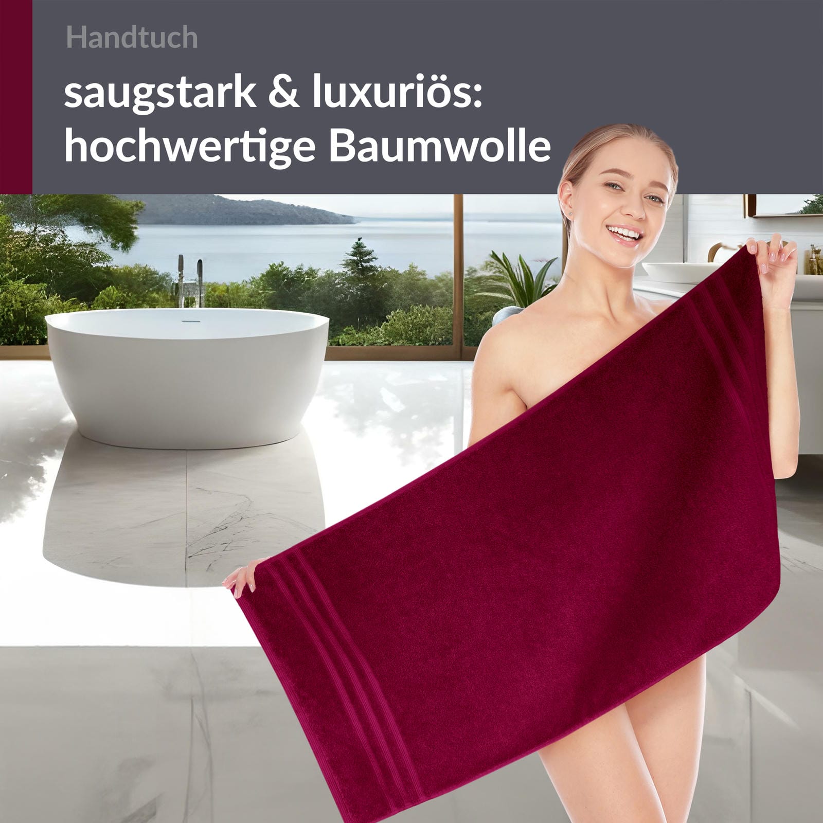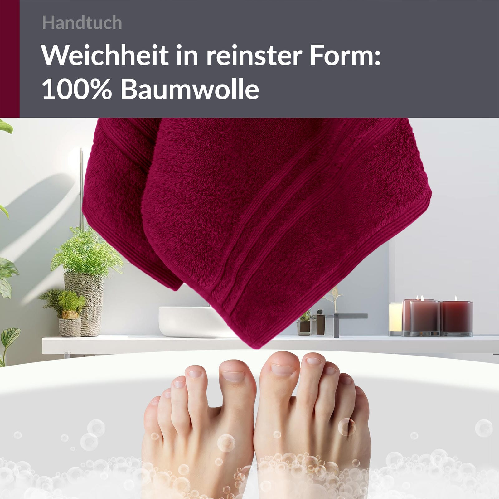 EXQUISITE BESCHAFFENHEIT: Das mittelgroße Handtuch in ca. 50x100 cm aus 100% Baumwollfrottee bietet mit einem Gewicht von 500 g/m² eine dichte, flauschige Textur, die für ein luxuriöses Wohlfühlerlebnis sorgt.