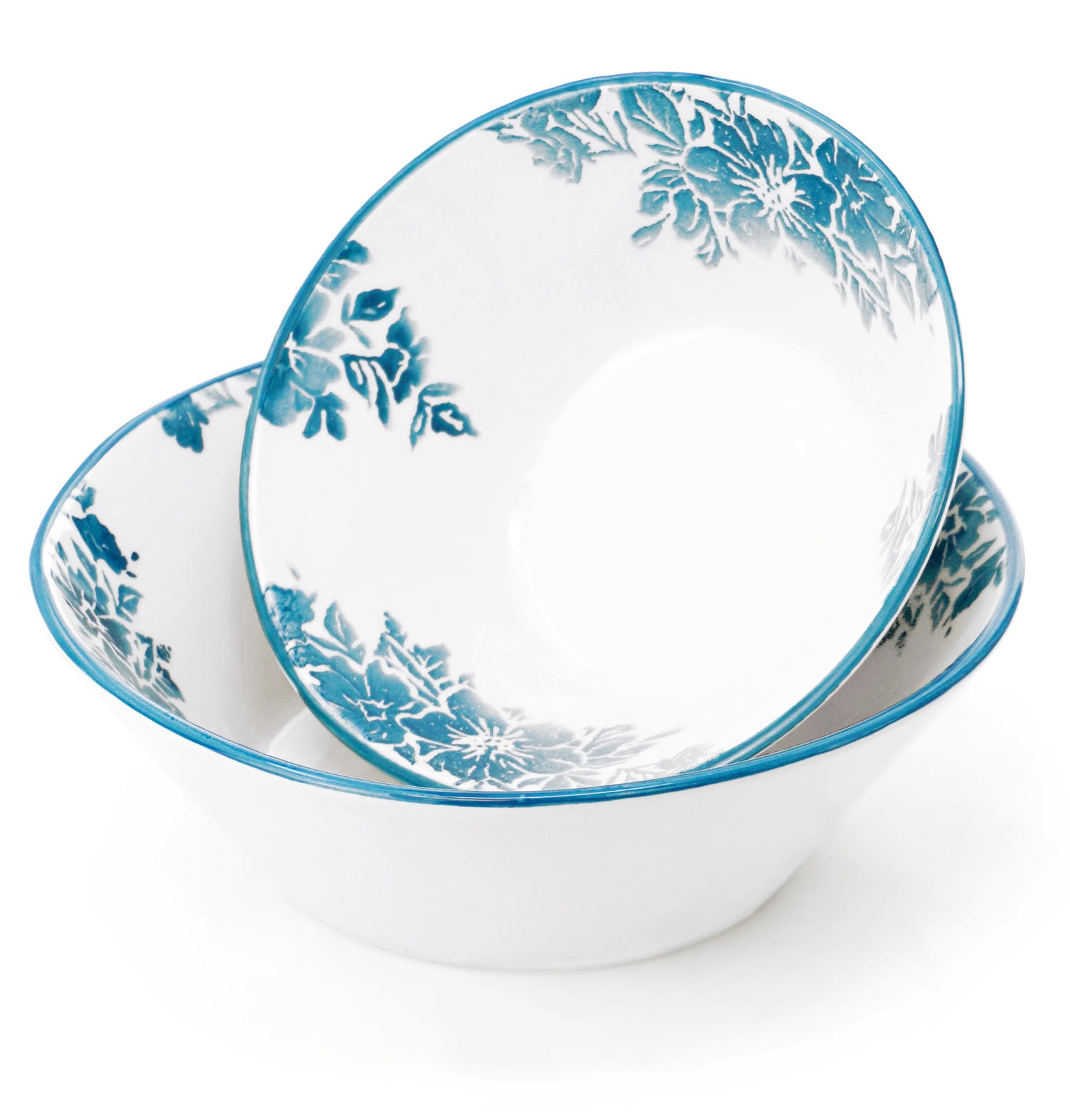 🌼 Allseits beliebt sind Pasta, Obst oder Salat. Und mit unserem 2er Set Servierschalen im blauen Blumen Motiv Enzian richten Sie leckere Speisen doppelt köstlich an.