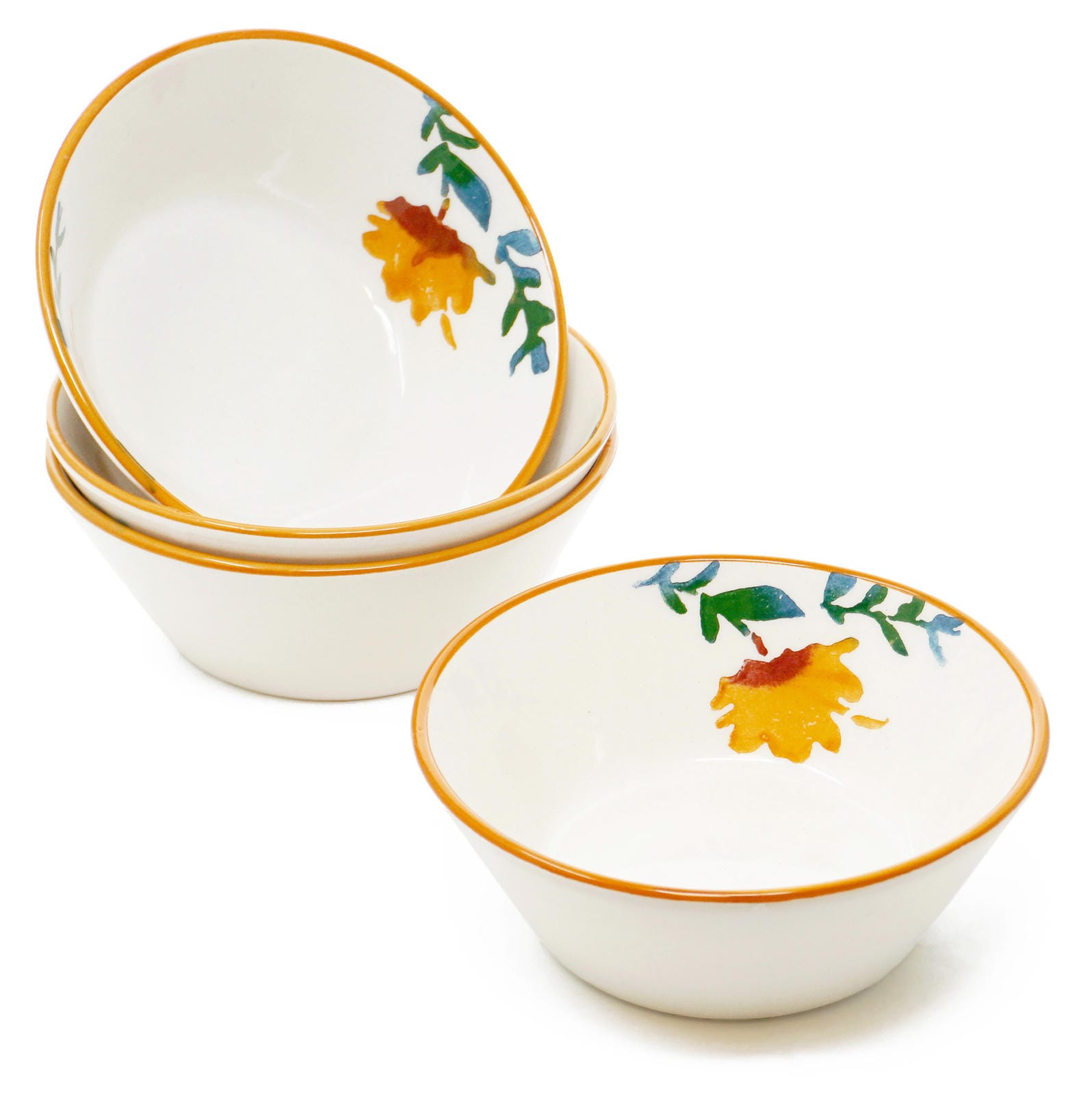 Suppenschüsseln rund 14 cm Ø, Schälchen bunt Blütenfest, 4er Keramikschüssel Set