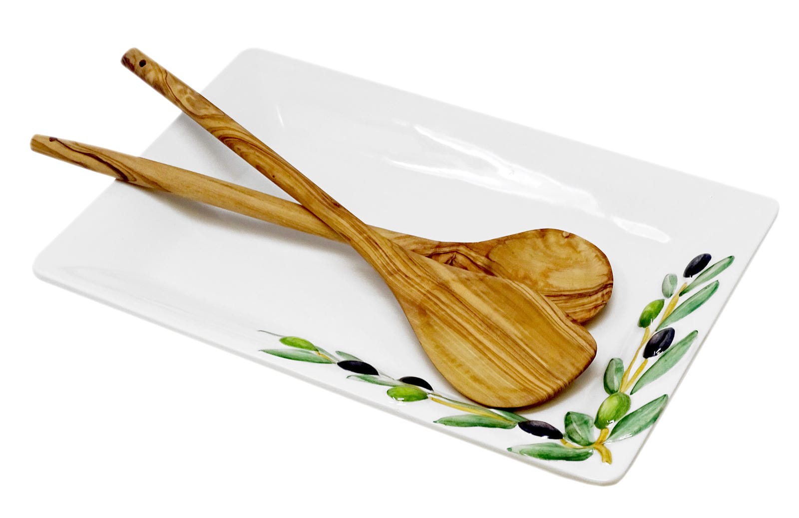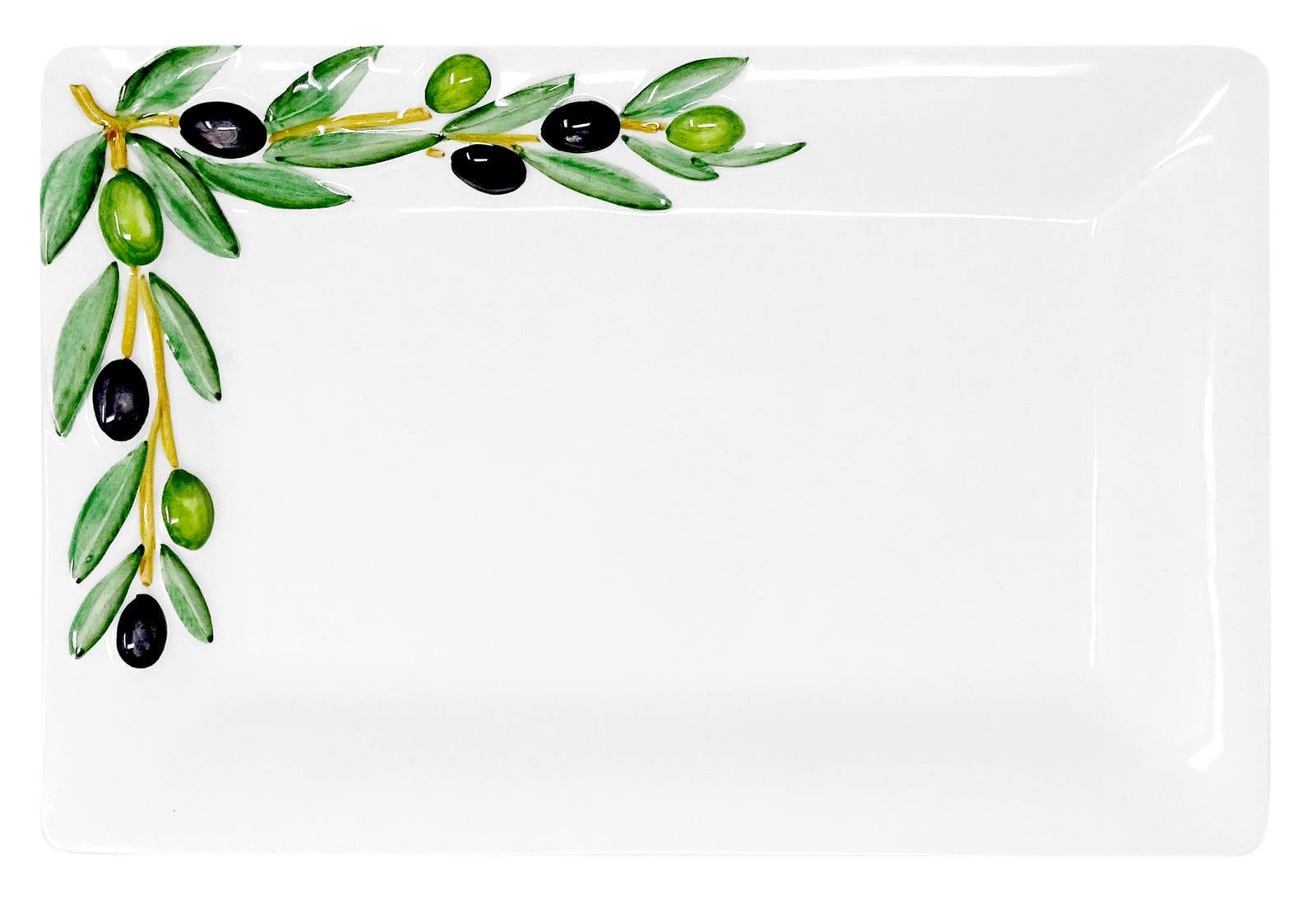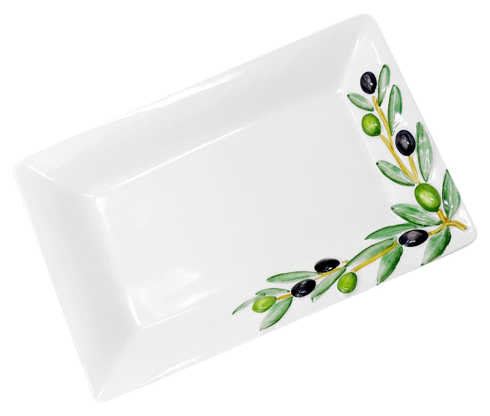 Handgemachte, Rechteckige Servierplatte aus Italienischer Keramik, Fleischplatte im Olivendesign, Servierteller 32x20 cm