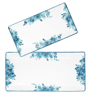 Kuchenplatten blau Enzian, 2er Set Speiseteller 28x15 cm - 38x18 cm, Fleischteller eckig