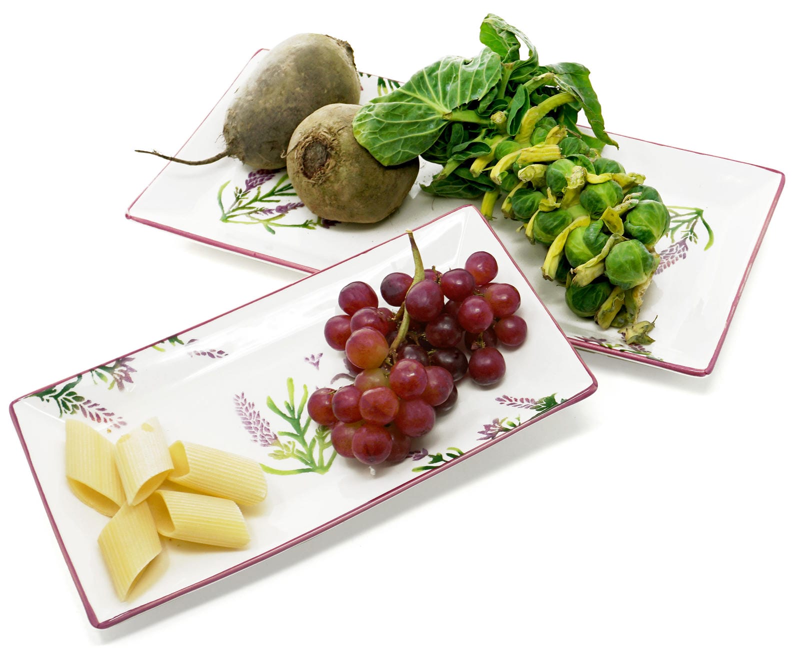 tiefe Obstplatten 28x15 cm - 38x18 cm, Servierteller Set 2 teilig, Speiseteller lila Lavendel