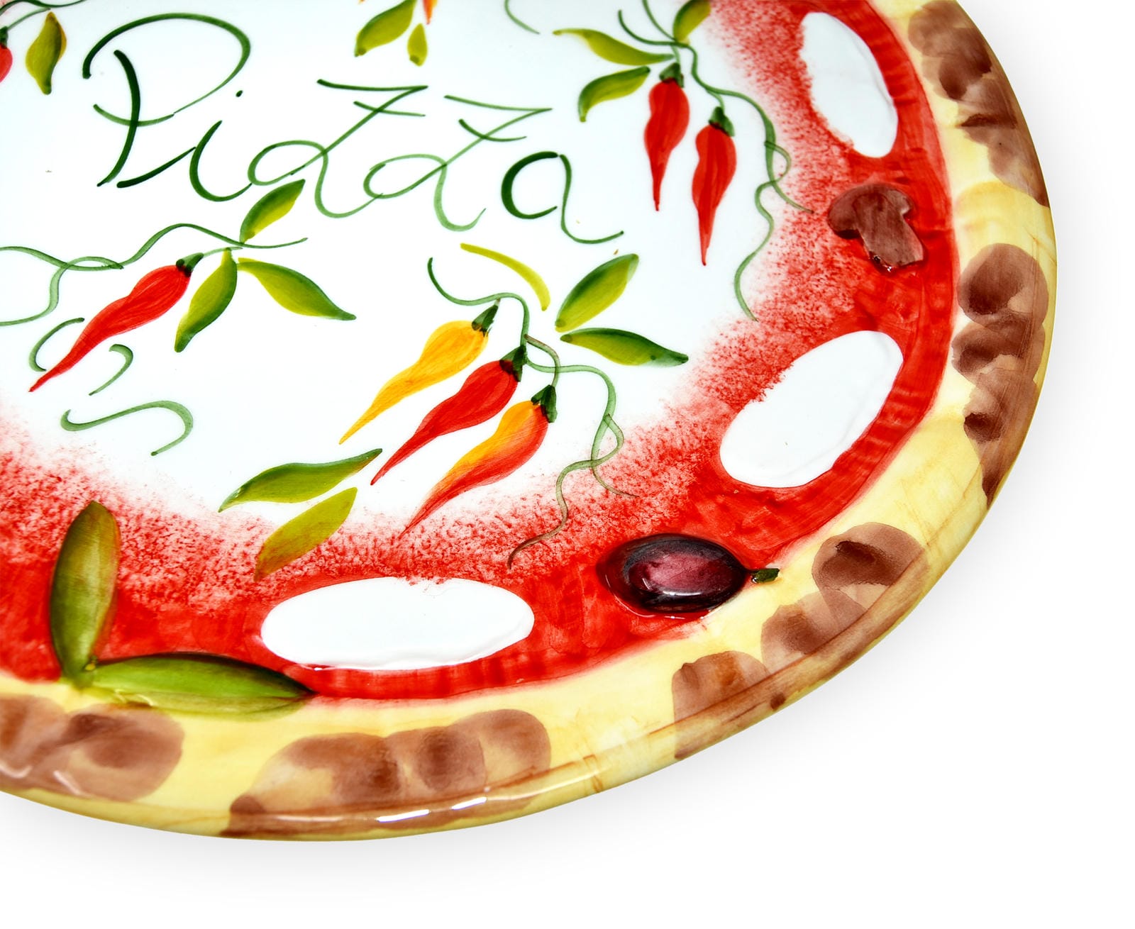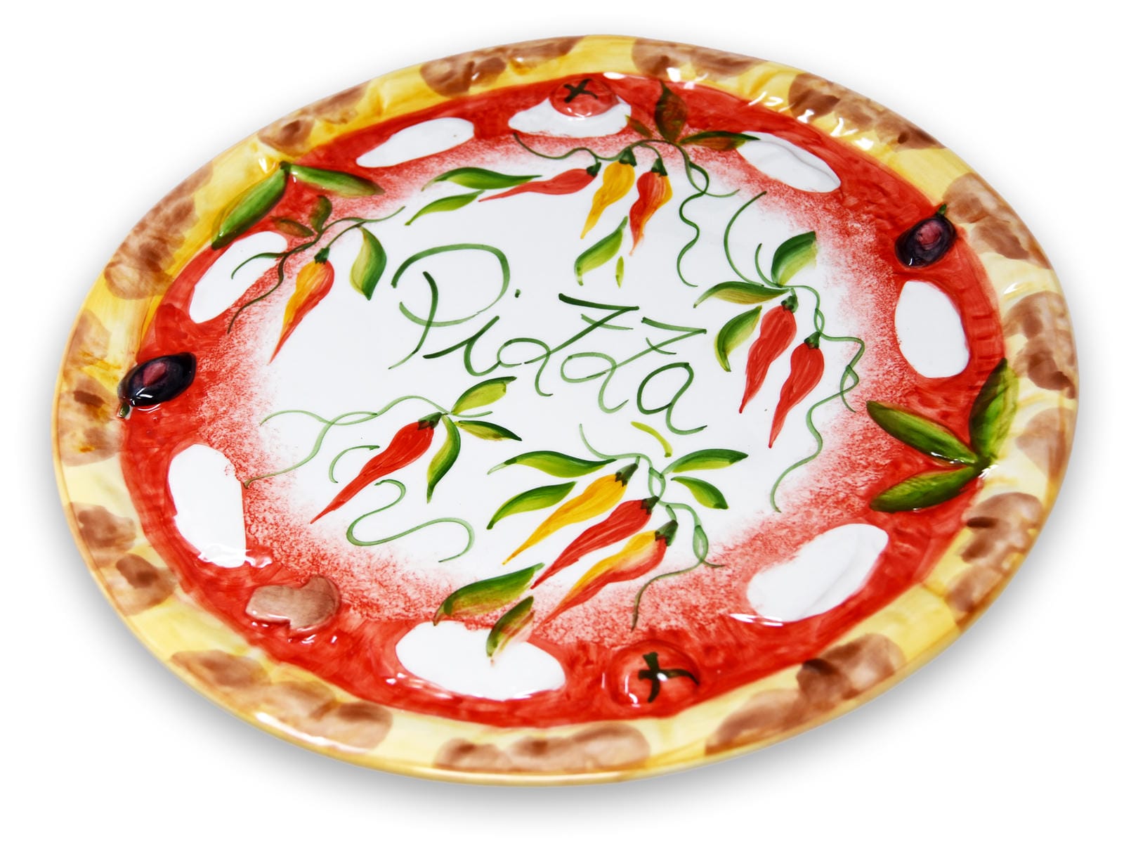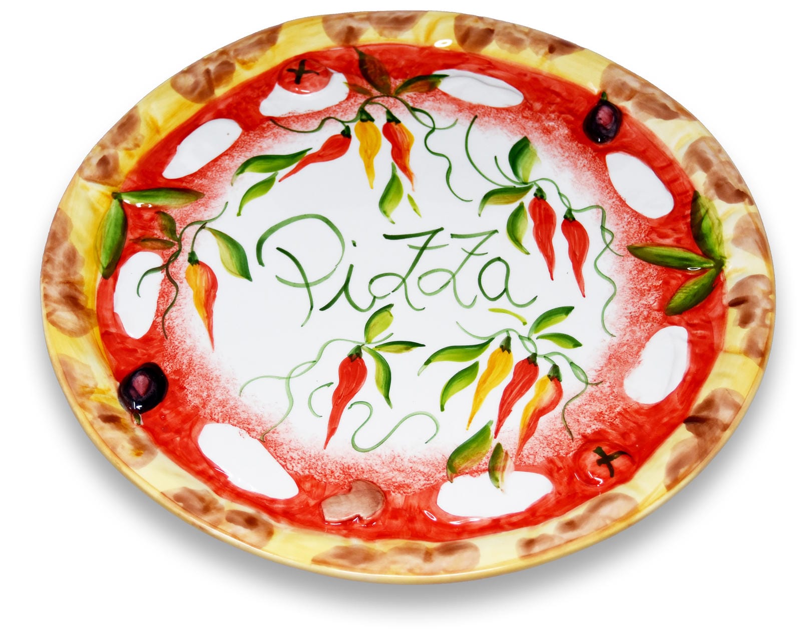 🫑 Da wo die Pizza Zuhause ist, ist dieser schöne Gourmetteller hergestellt. In Italien ist diese Pizza Platte aus feinster Keramik für Sie geformt und von Hand bemalt.