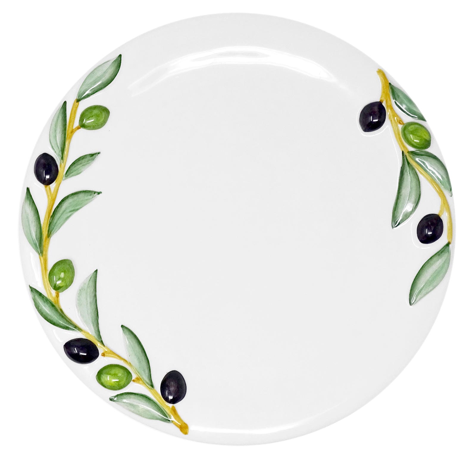 Handgemachter Runder Essteller aus Italienischer Keramik, Großer Servierteller im Olivendesign, Platzteller 27 cm