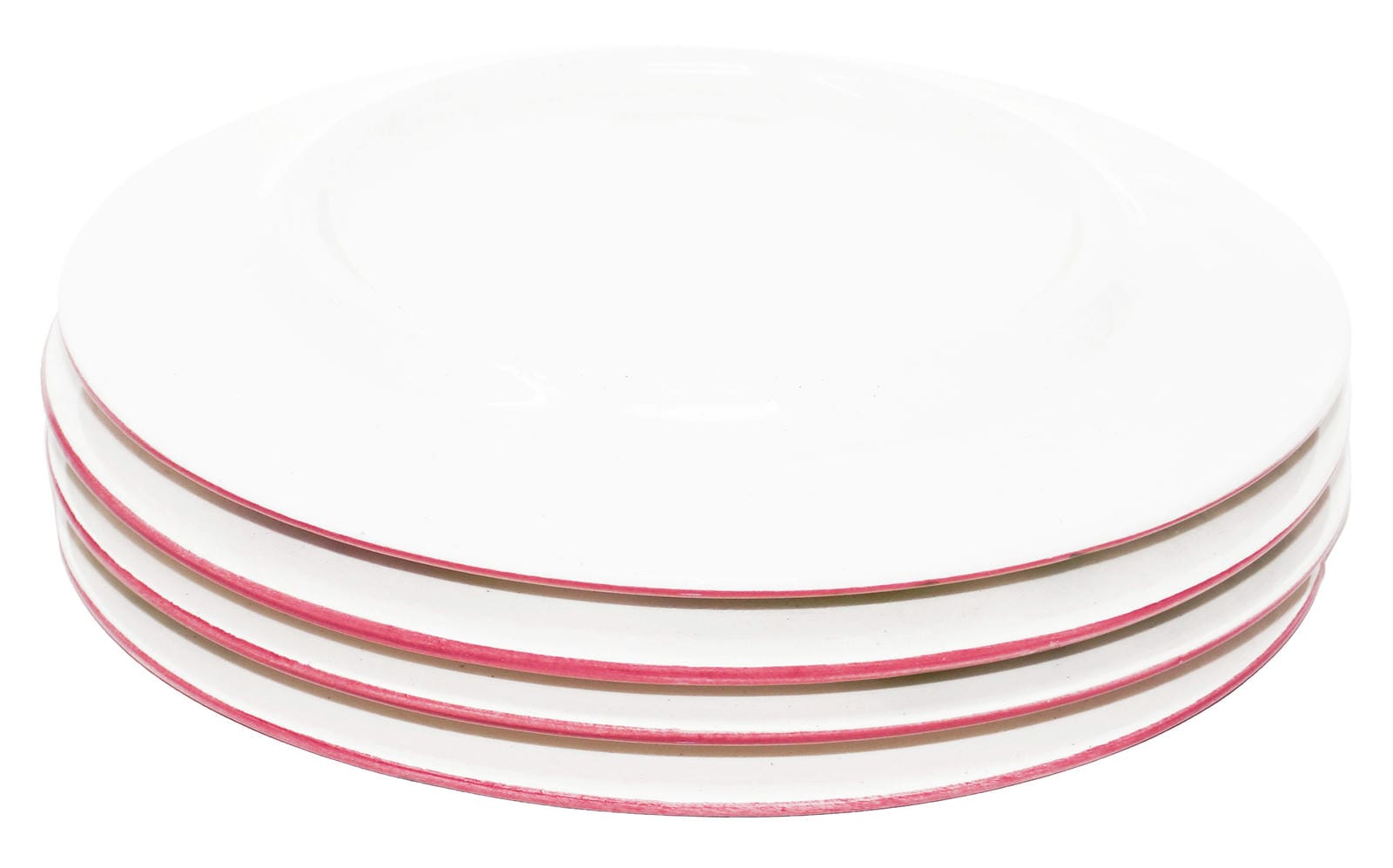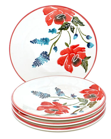 🌺 Rote Mohnblumen und grüne Blätter als Teller Motiv erwartet Sie mit unserem 4er Set Frühstückstellern. Der Rand dieser Deko Essteller ist rot bemalt.