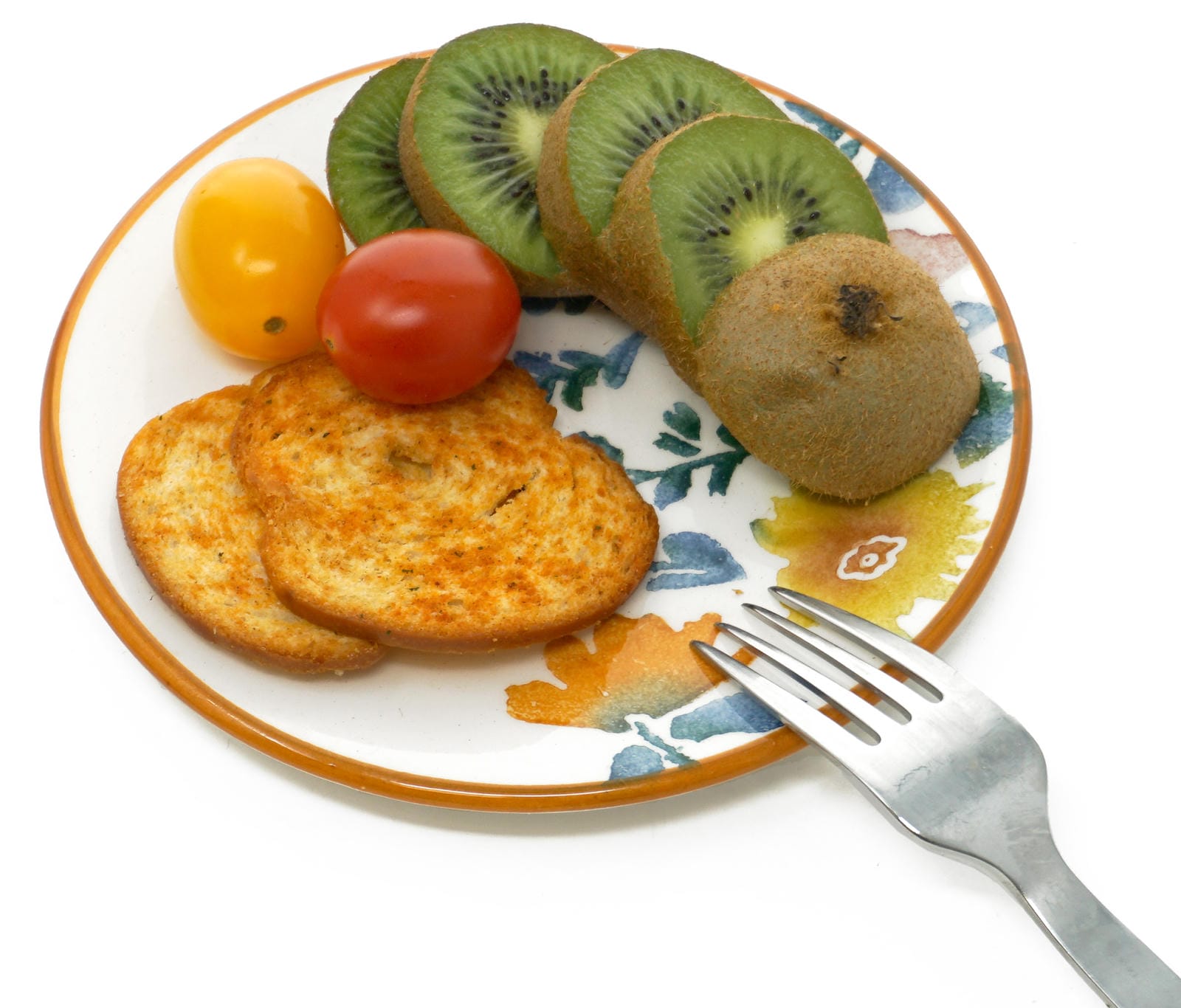 🍂 Bunte Blüten in warmen Herbstfarben flattern Ihnen als Teller Motiv entgegen. Der orange Rand der flachen Obstplatten ist das optische i-Tüpfelchen.