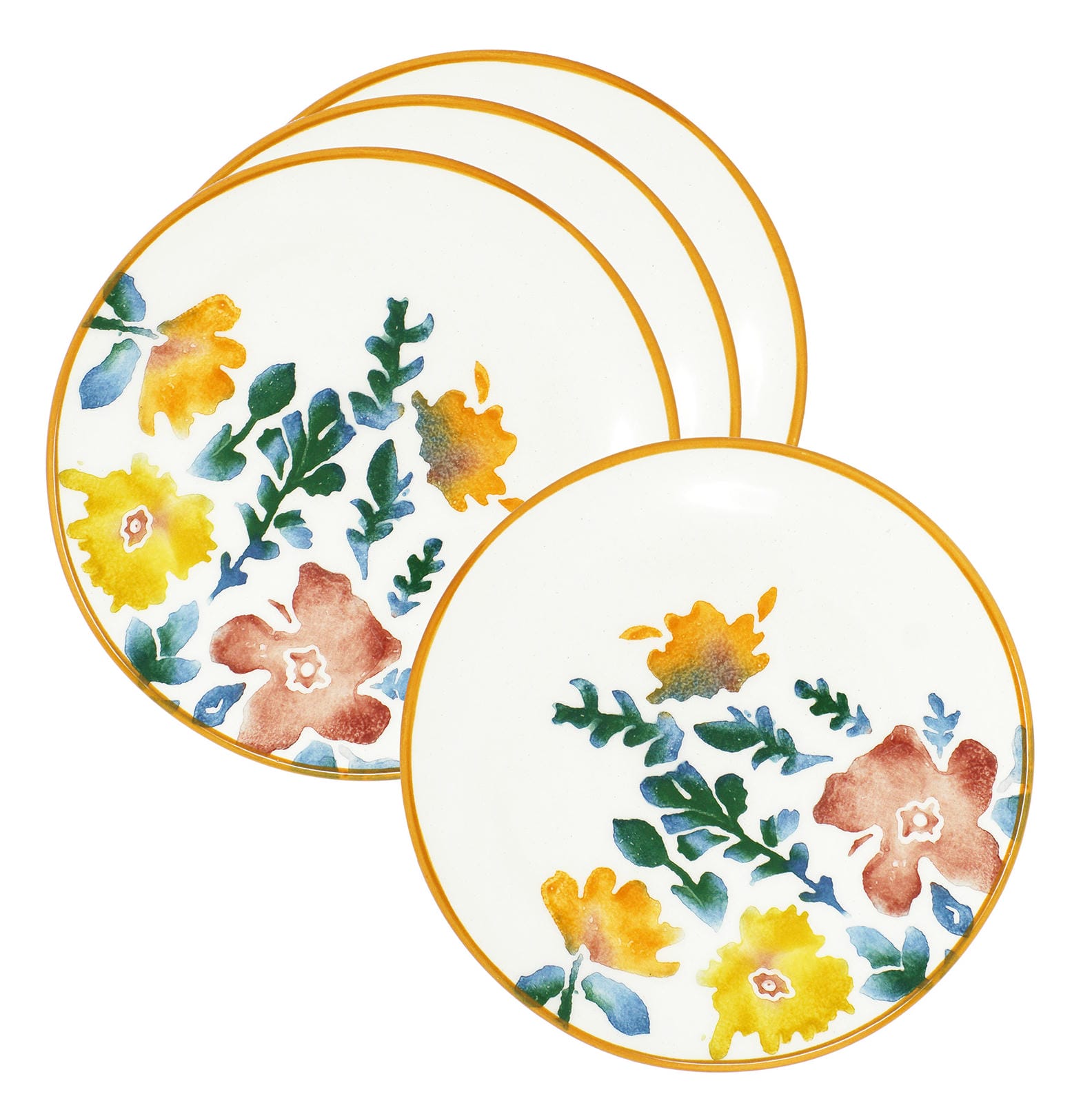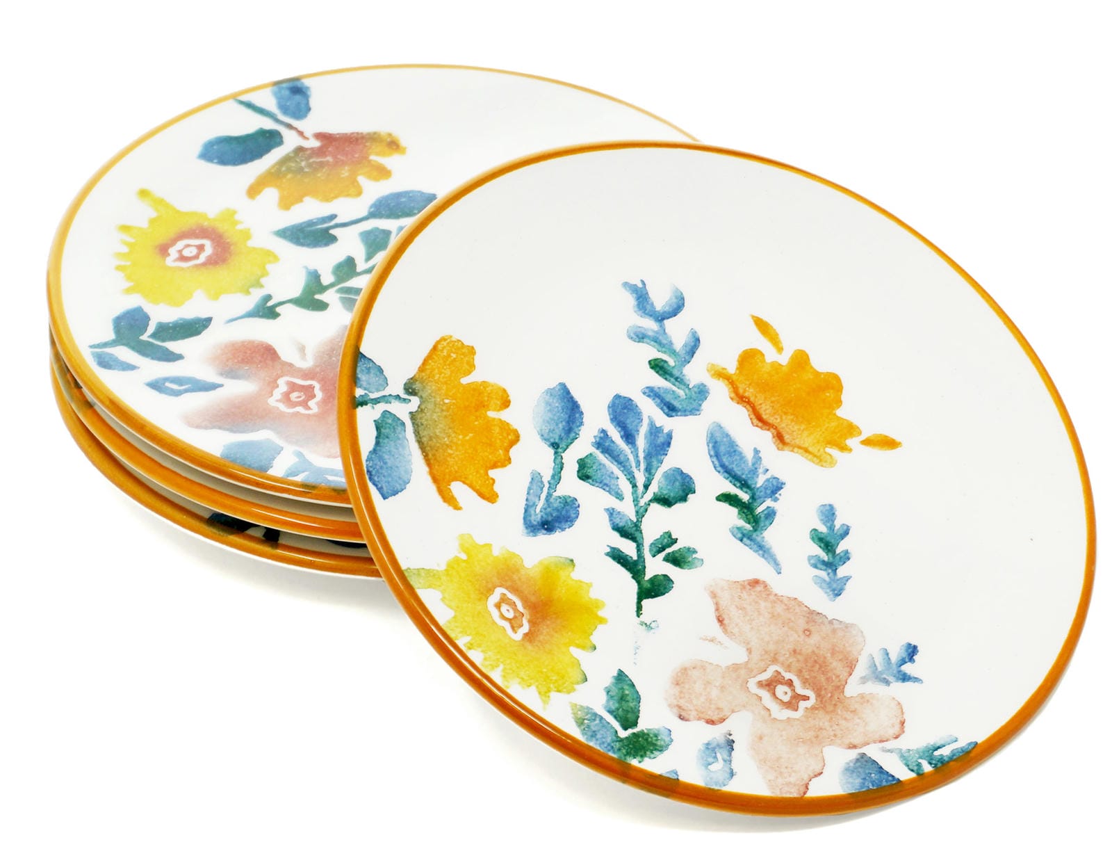 Speiseteller Keramik bunt, 4er Teller Set 15 cm Ø, Vorspeisenteller klein Blütenfest