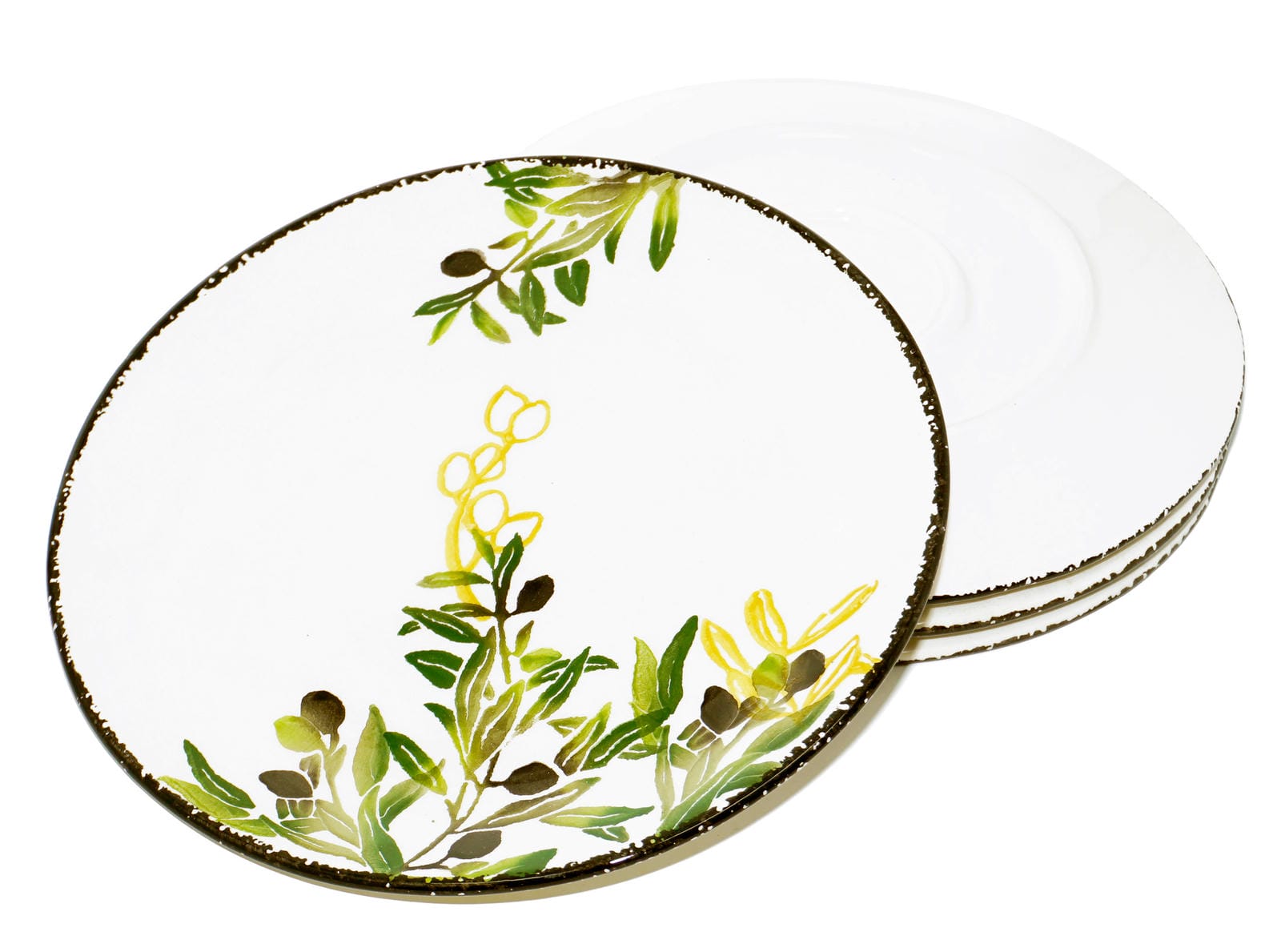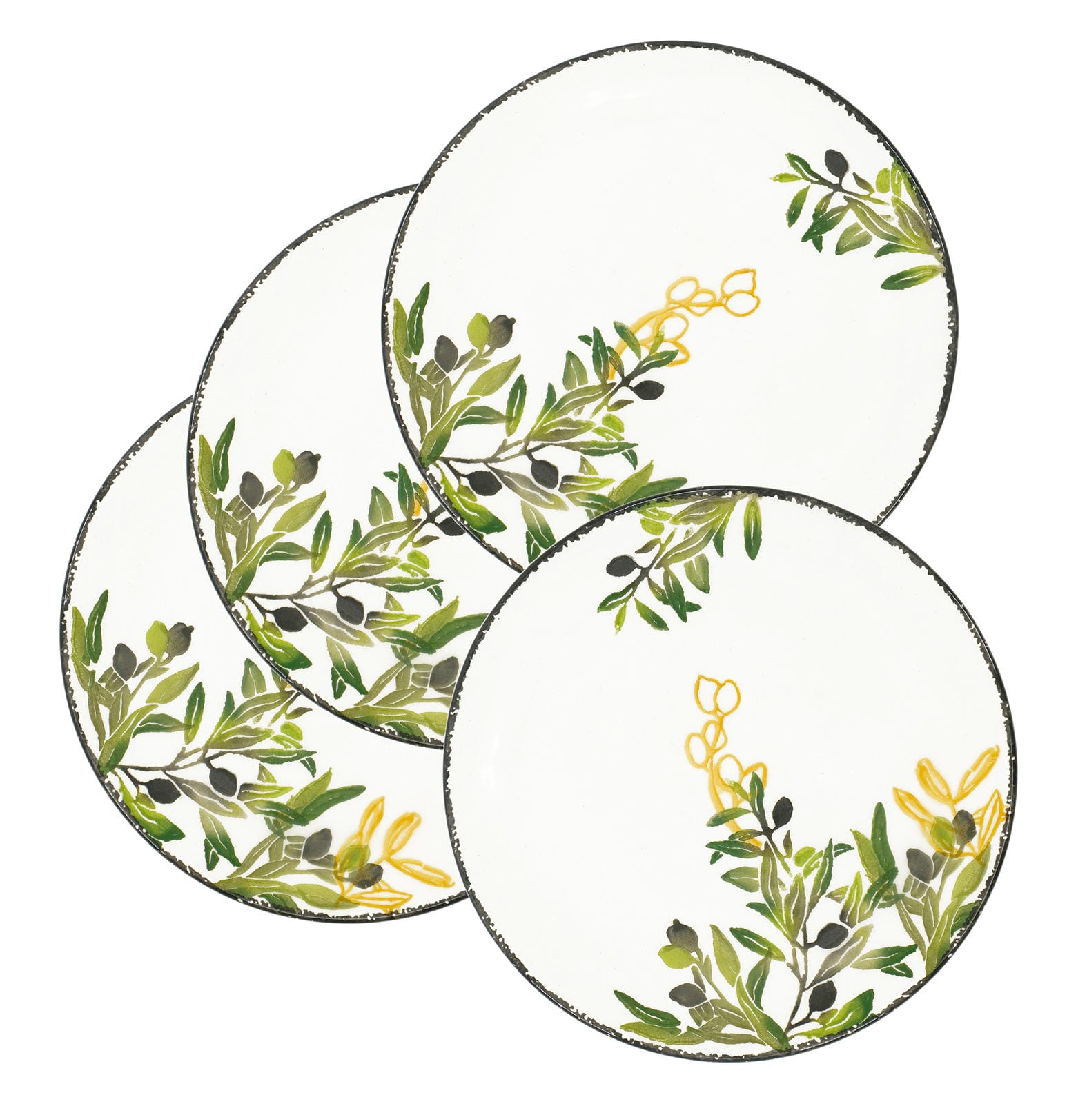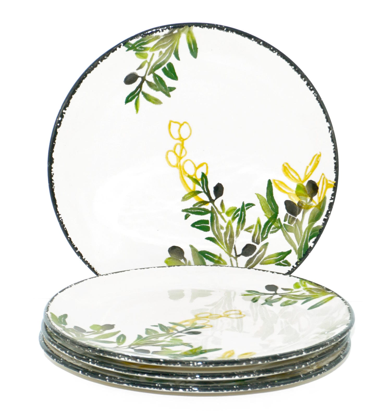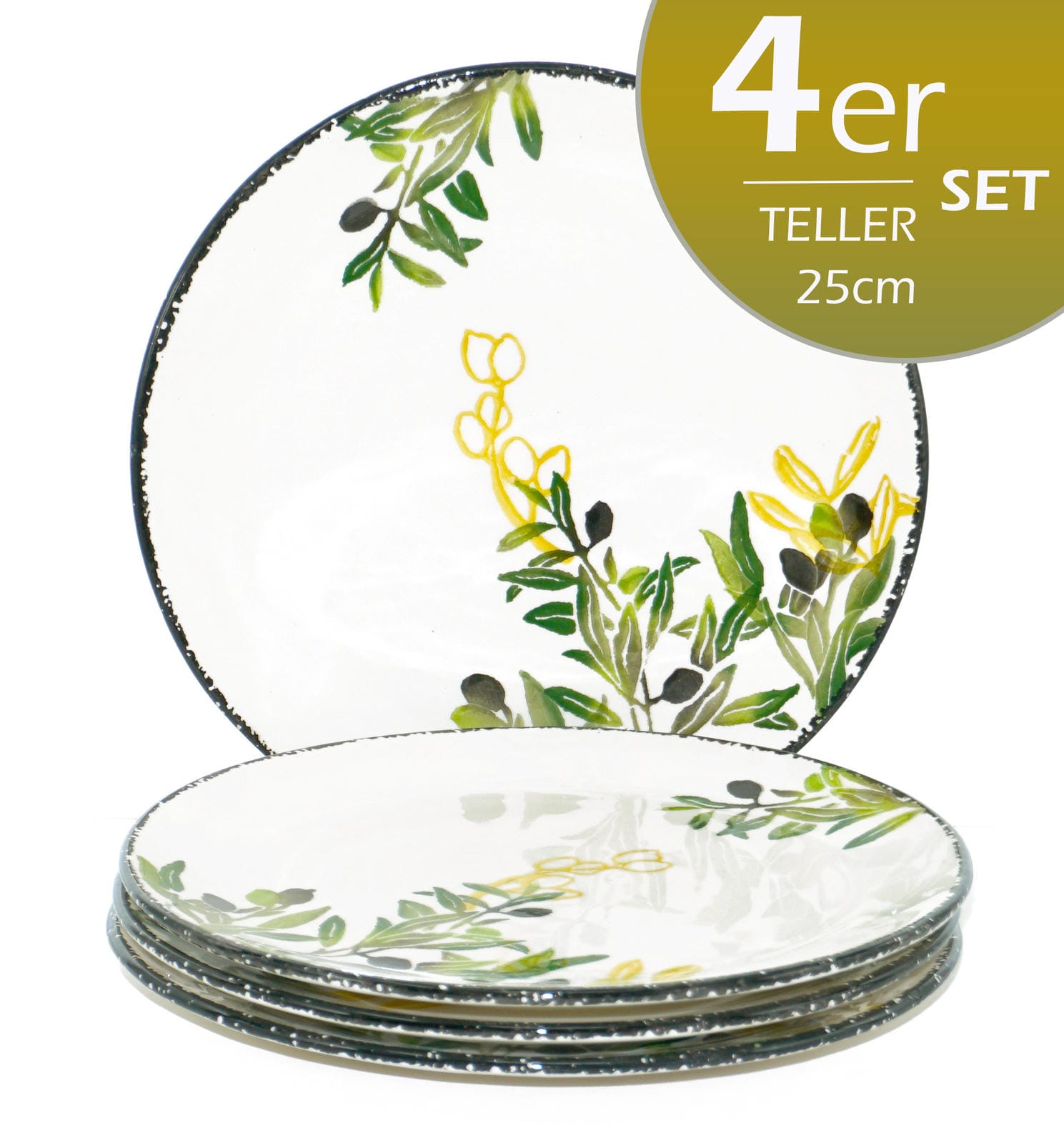 🫒 Weiße Essteller für 4 Personen mit Oliven Motiv! Unser Speiseteller Keramik Set bestehend aus 4 flachen großen Esstellern bringt Schwung in Ihre Küche.