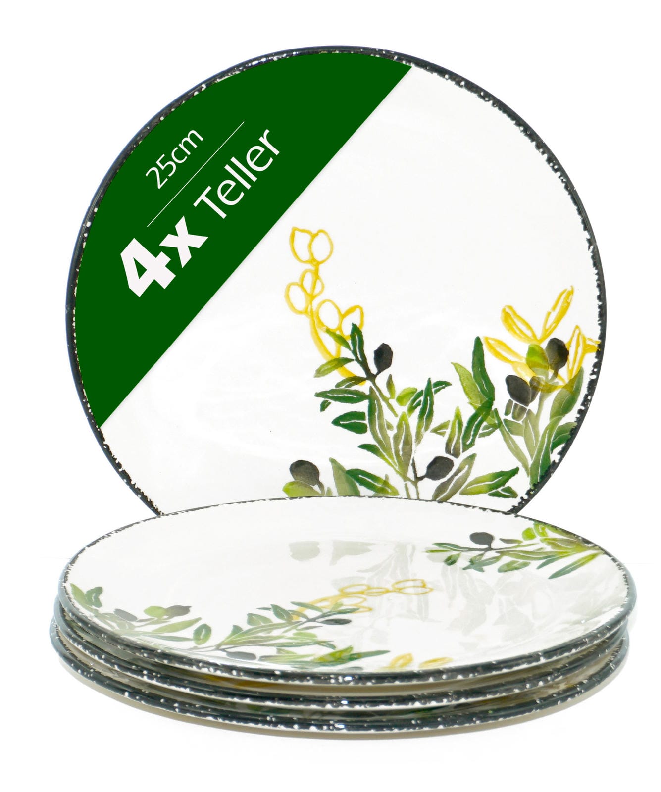 🫒 Dieses schöne Teller Geschirr Set ist der absolute Hingucker. An unseren modernen mediterranen Tellern erfreut sich Ihre ganze Familie.