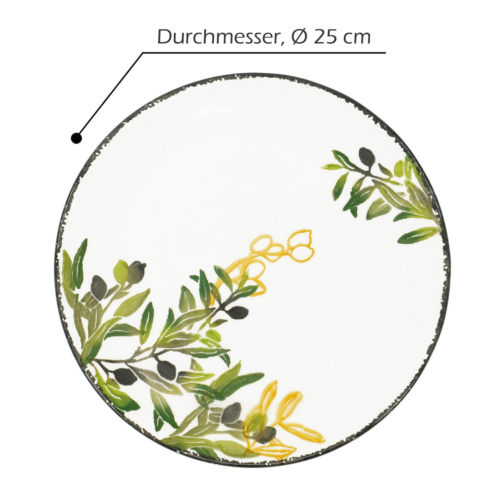 🫒 Große Keramik Essteller mit Oliven Motiv bringen mediterranes Flair auf den Tisch, bunte Flachteller verleihen einen schönen Eindruck.