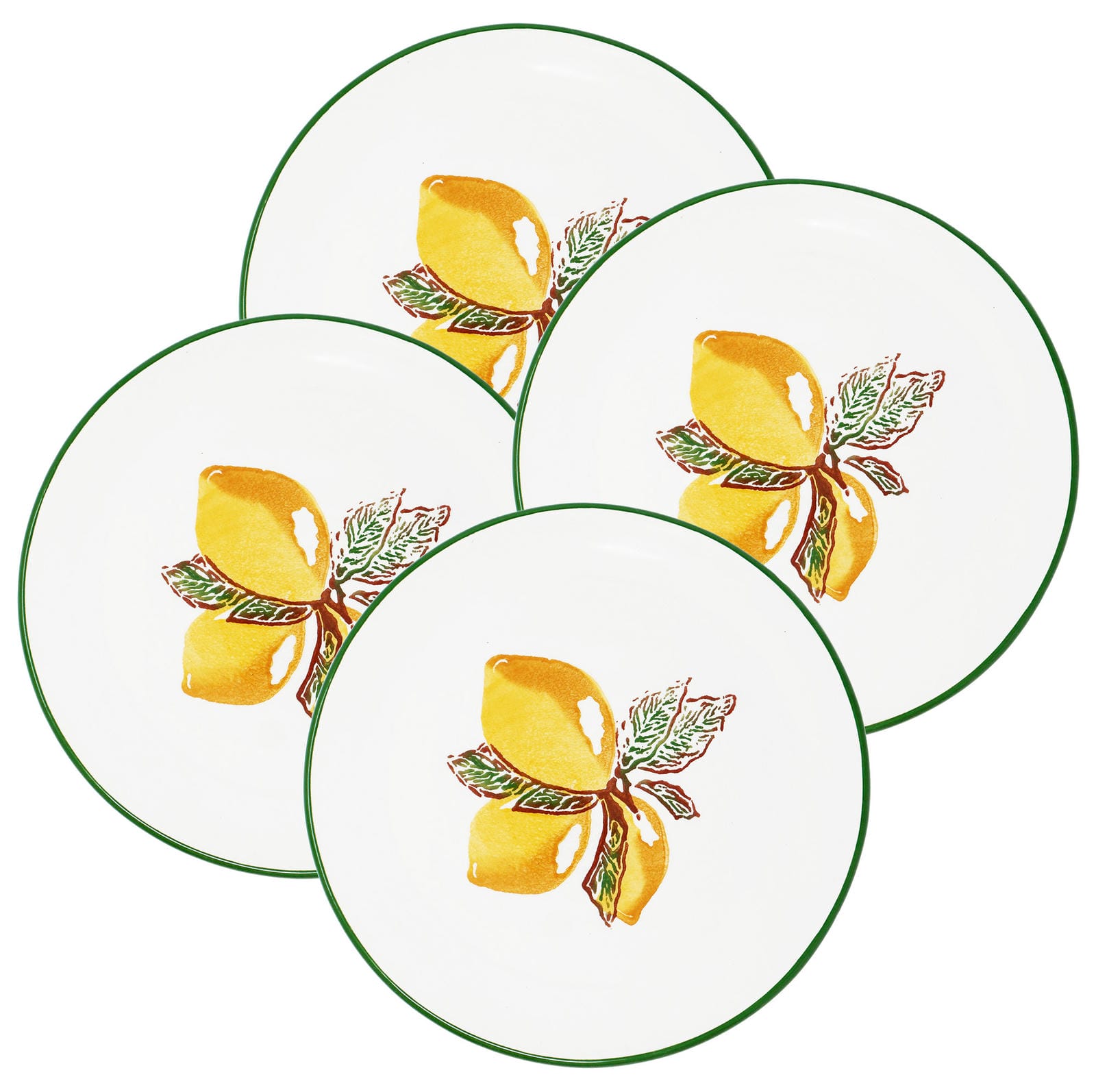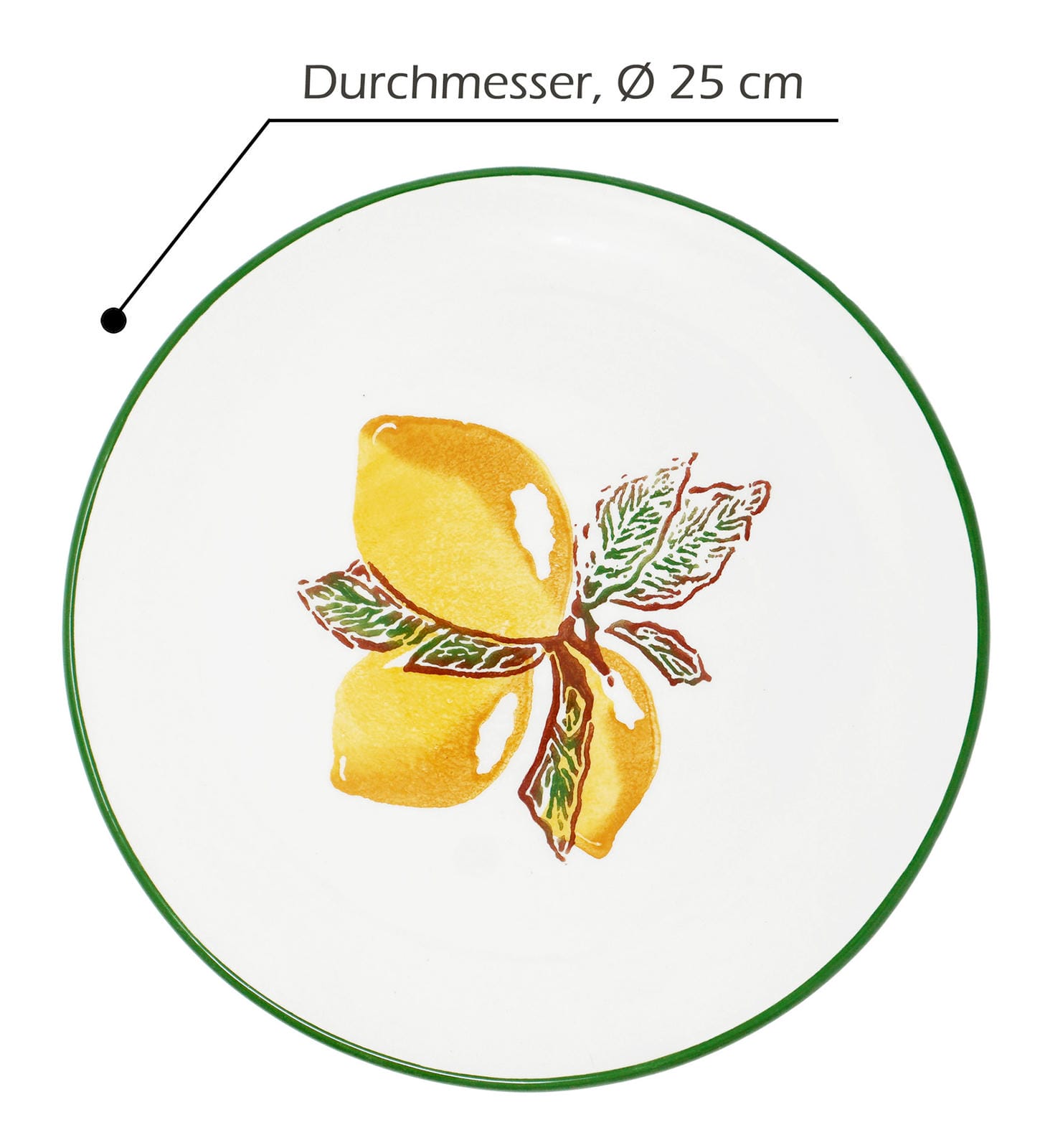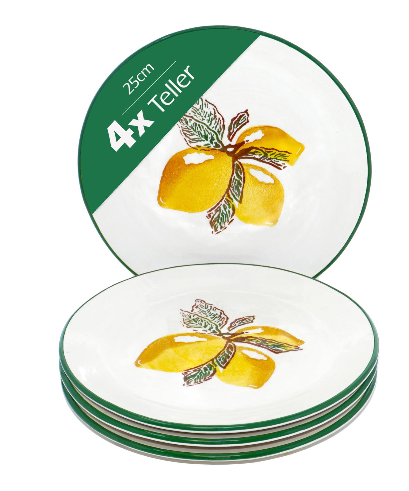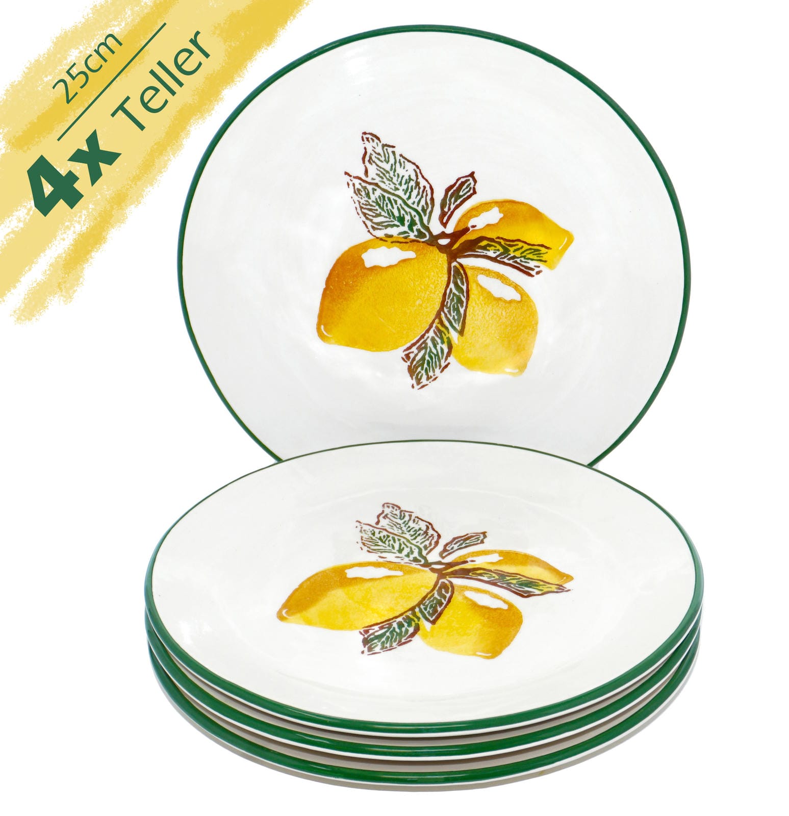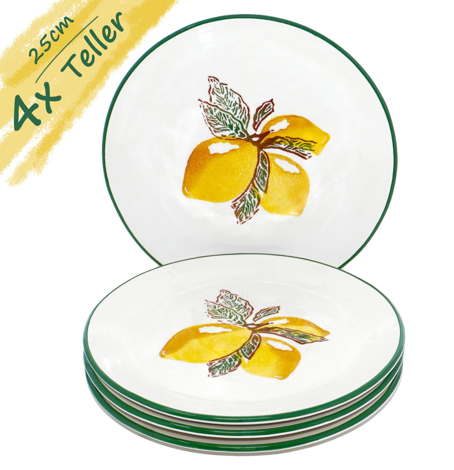 Servierteller Zitrone gelb, 4er Tellerset Keramik 25 cm Ø, flache Speiseteller rund