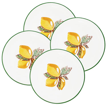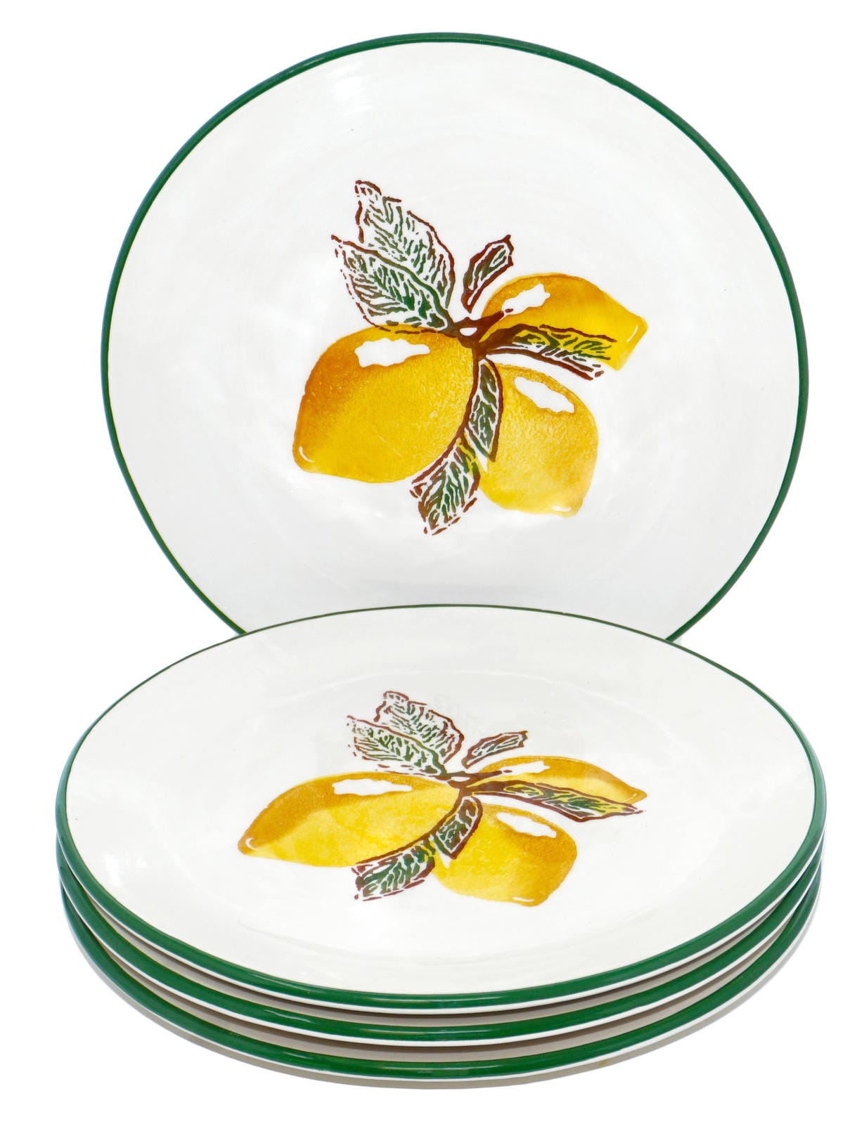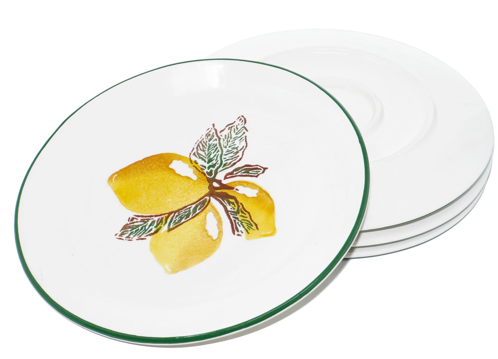 🍋 Warum weiße Keramikteller, wenn es auch mit gelben Zitronen geht? Unser 4 teiliges Tellerset aus großen Flachtellern bringt neuen Schwung in Ihre Küche.