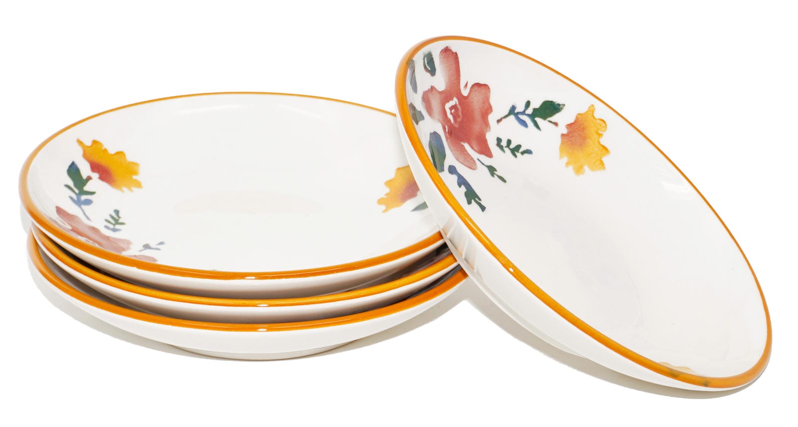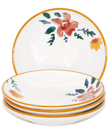 Salatteller tief 19 cm Ø, Teller Pasta 4 Personen, Keramikteller bunt Blütenfest