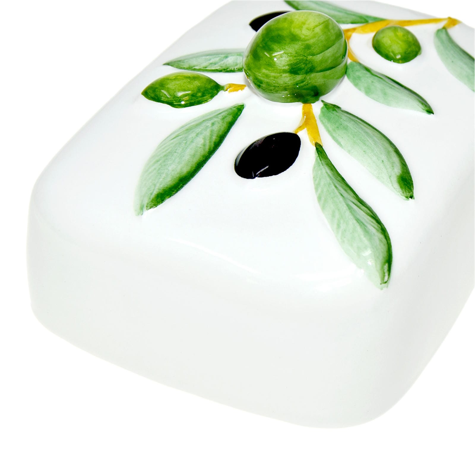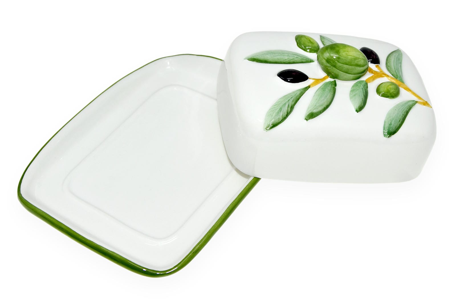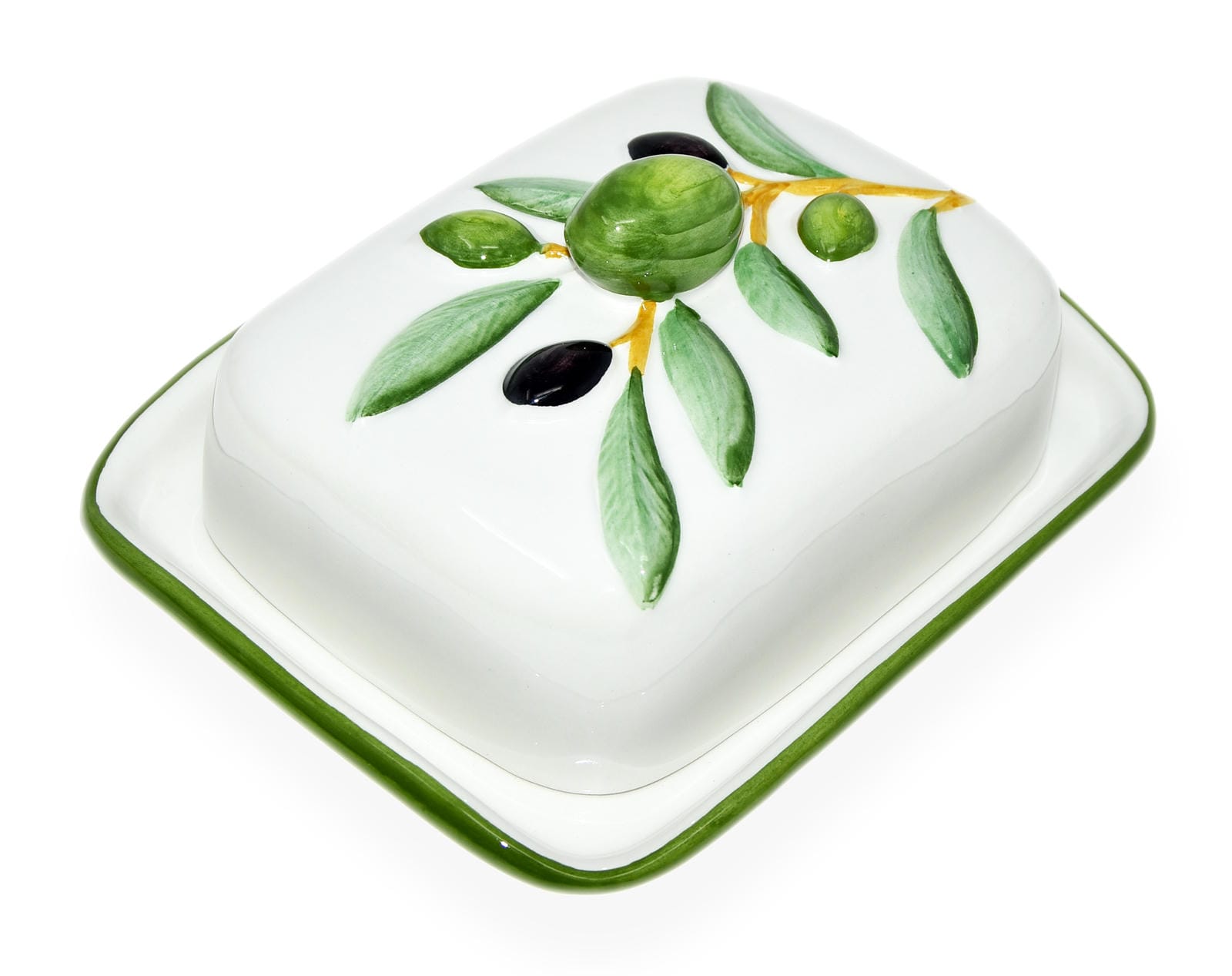Handgemachte Butterdose aus Italienischer Keramik im Olivendesign, Butterschale Größe 18 x 14 cm