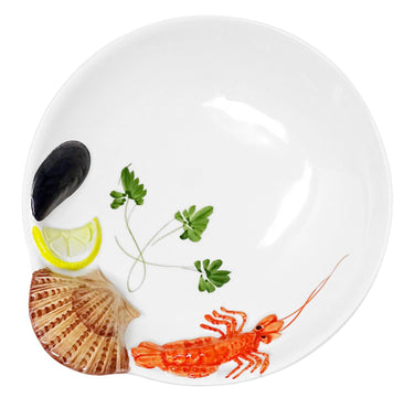 Handgemachter Suppenteller aus Italienischer Keramik im Meeresfrüchte Design, Tiefer Teller 22 cm, 5 cm tief