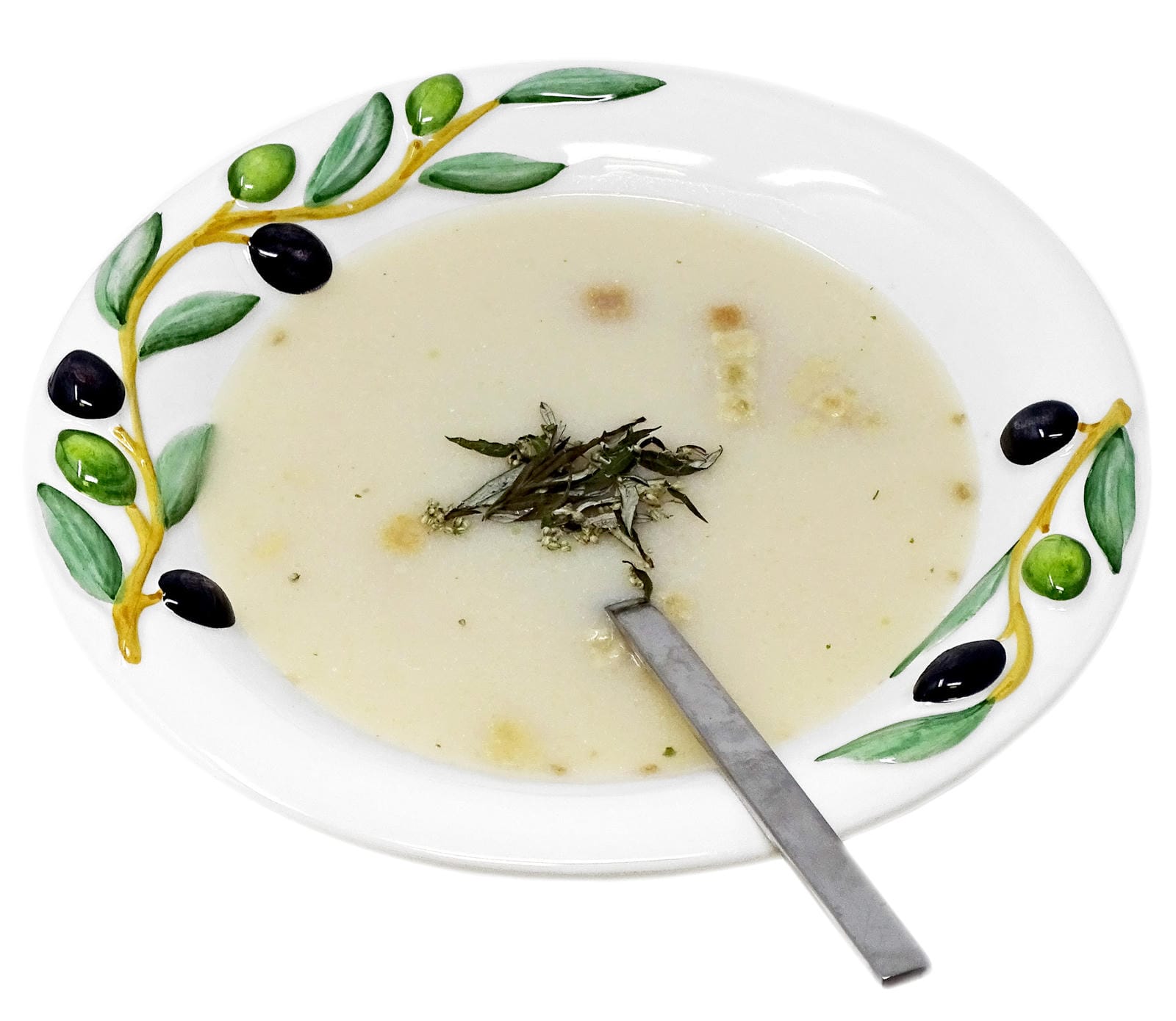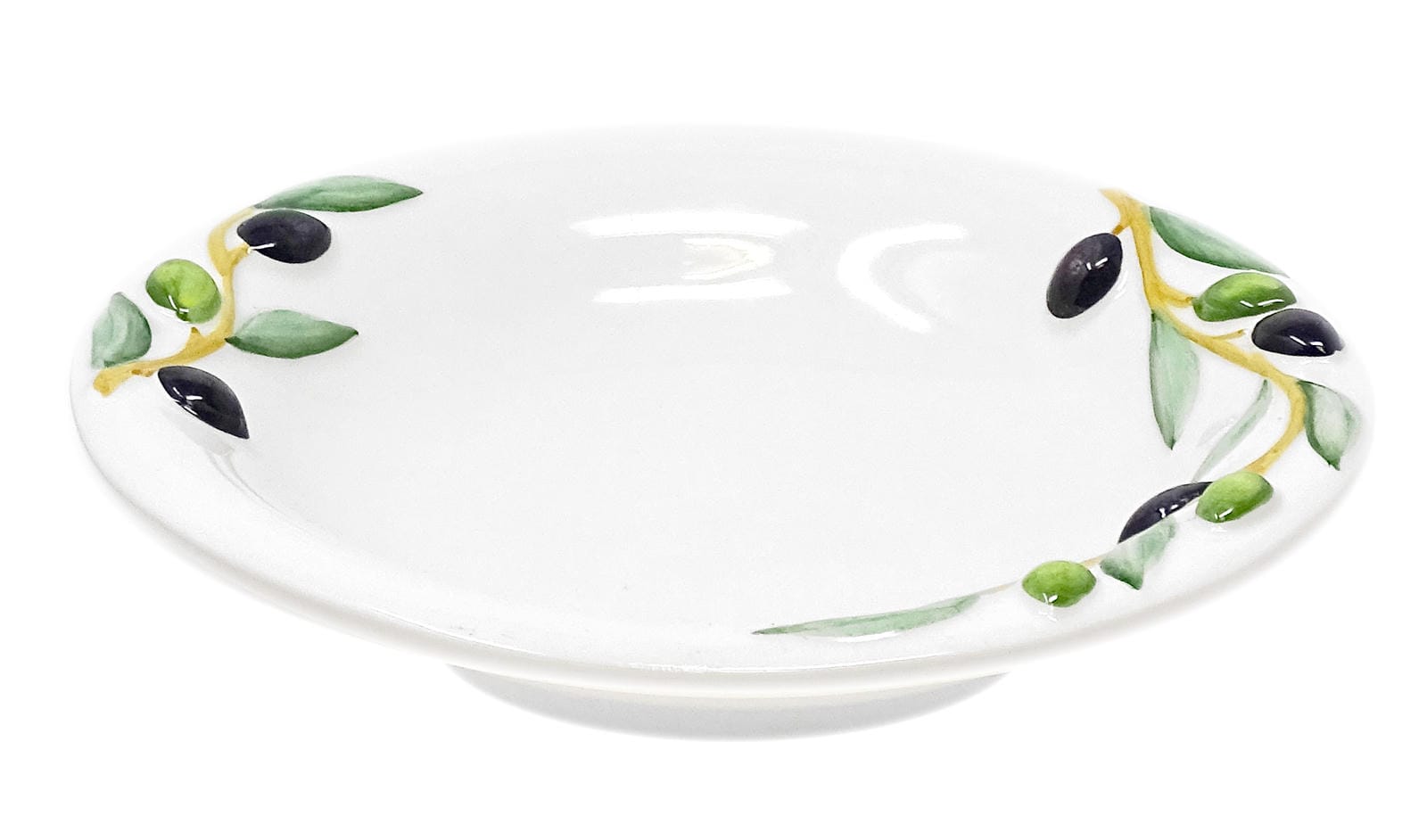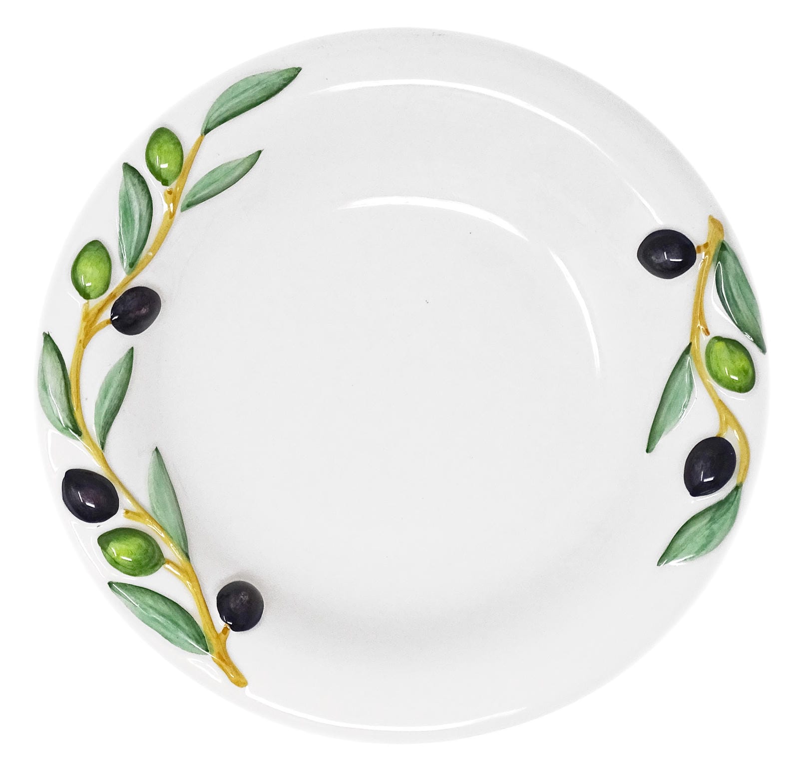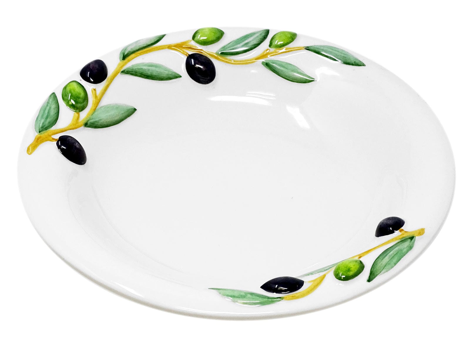 Handgemachter Suppenteller aus Italienischer Keramik, Tiefer Teller Reliefdekor Oliven, Runder Essteller Größe 23 cm