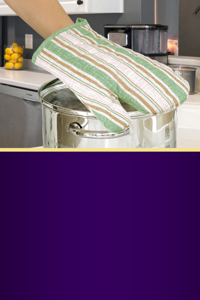 Wenn es am Herd oder Ofen heiß wird, zählt verlässlicher Schutz: Unsere Ofenhandschuhe sind gefüttert, doppelt gesteppt dadurch besonders robust und formstabil. So lassen sich Töpfe, Pfannen und Backformen sicher anfassen und aus dem Ofen holen, ohne dass Sie sich die Hände verbrennen.