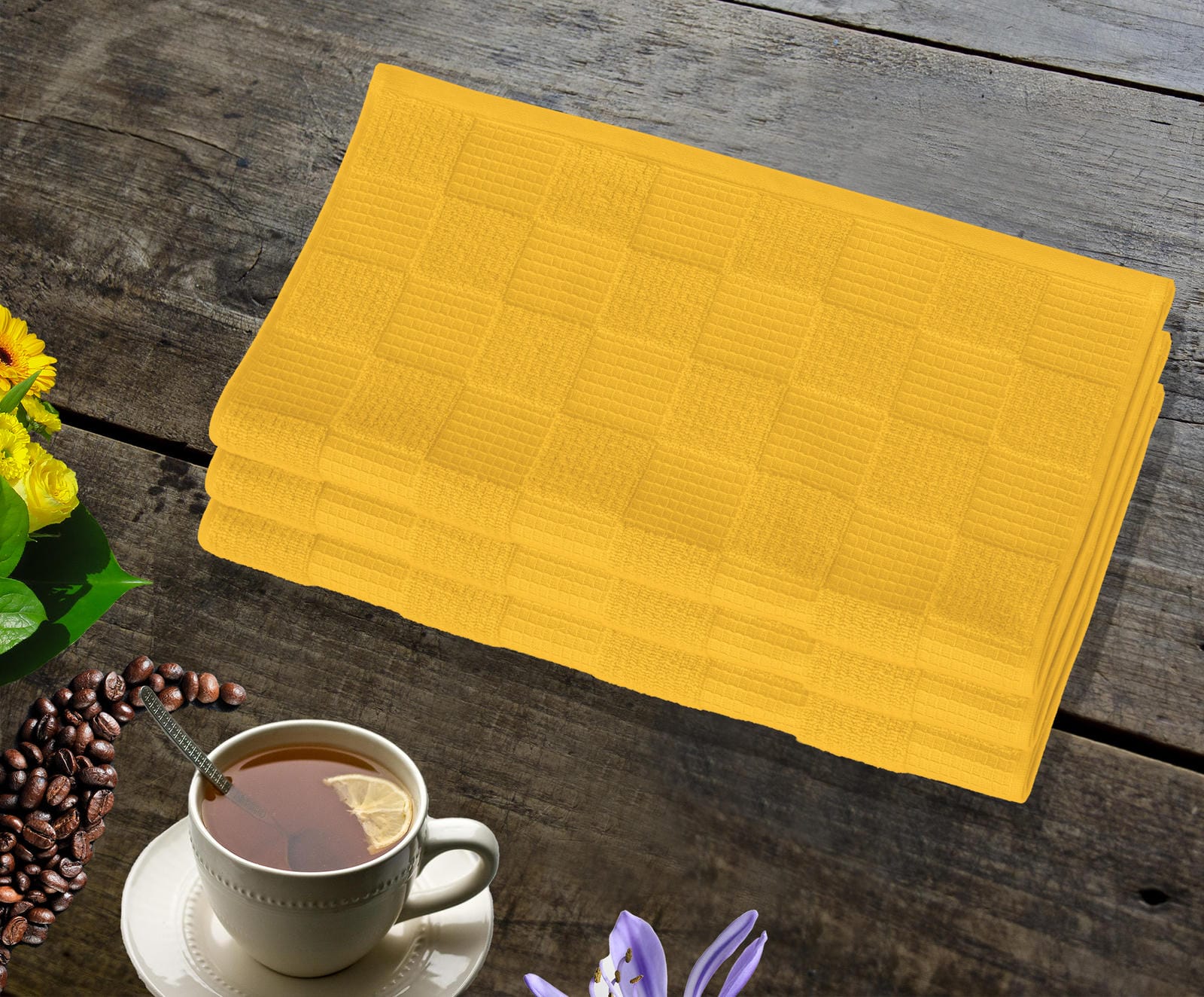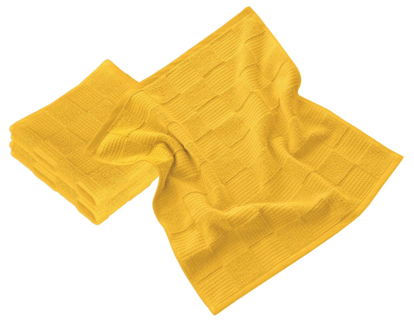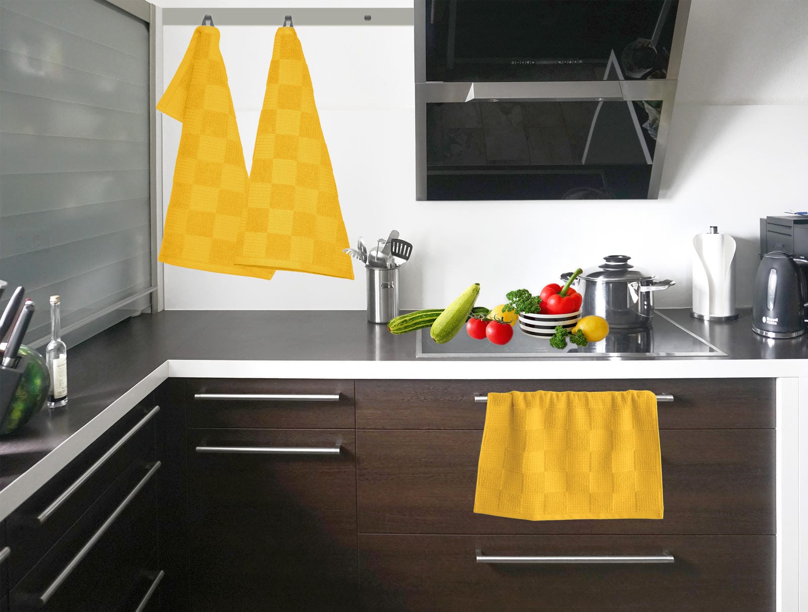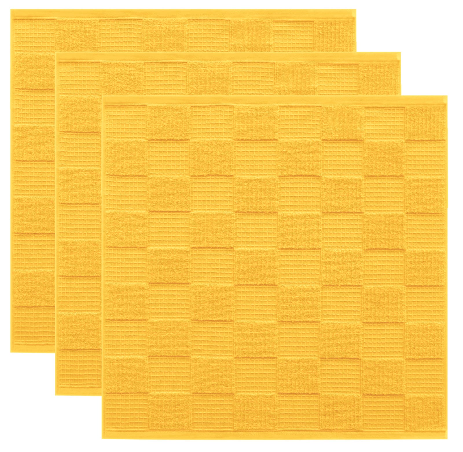 Hochwertige Geschirrhandtücher aus Frottee und Waffelpique in Gelb begleiten Sie ab jetzt im Haushalt! Unser 3er Set Küchentücher ca. 50x50 cm ist der neue Blickfang.