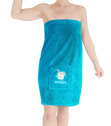Saunakilt Damen Blau - Aquamarin, Saunatuch mit Klettverschluss XS - M