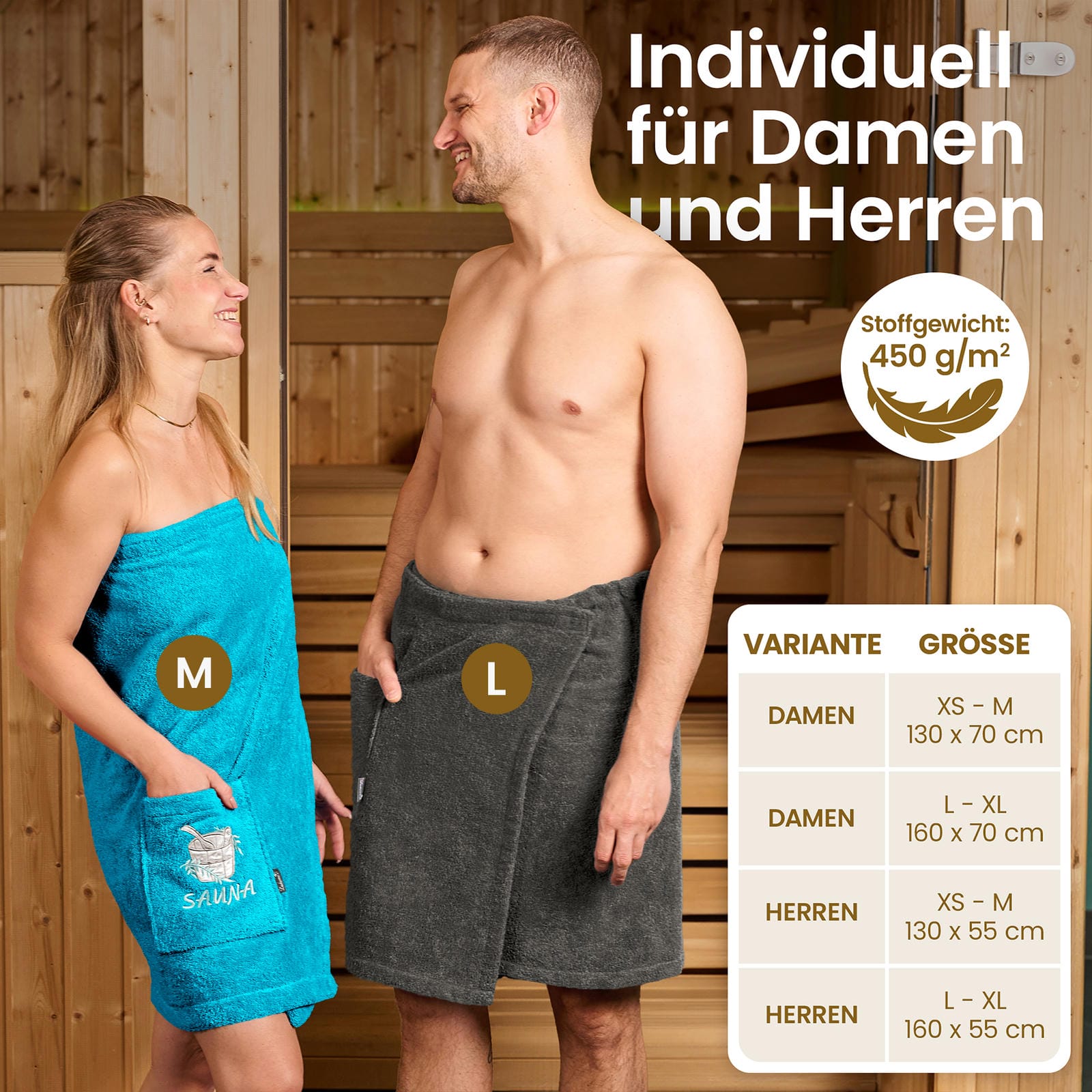GENERÖSE GRÖßE VON 70 X 130 CM: Dieses Damen Saunahandtuch bietet perfekten Sitz dank eines flexiblen Gummizugs im Rücken, der für sicheren Halt sorgt und Entspannung garantiert.