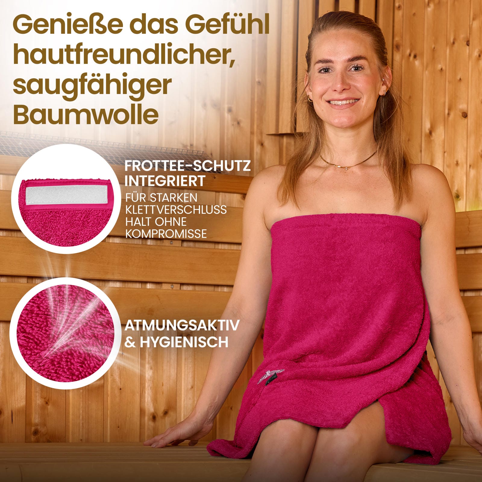 Saunakilt Damen Pink - Purpur Saunatuch mit Klettverschluss XS - M