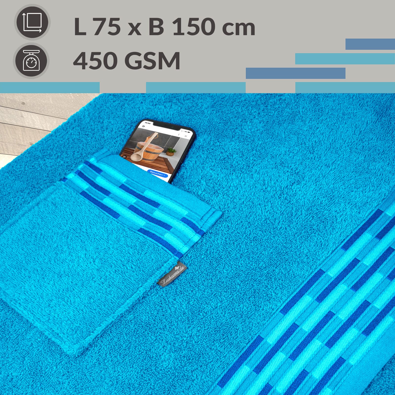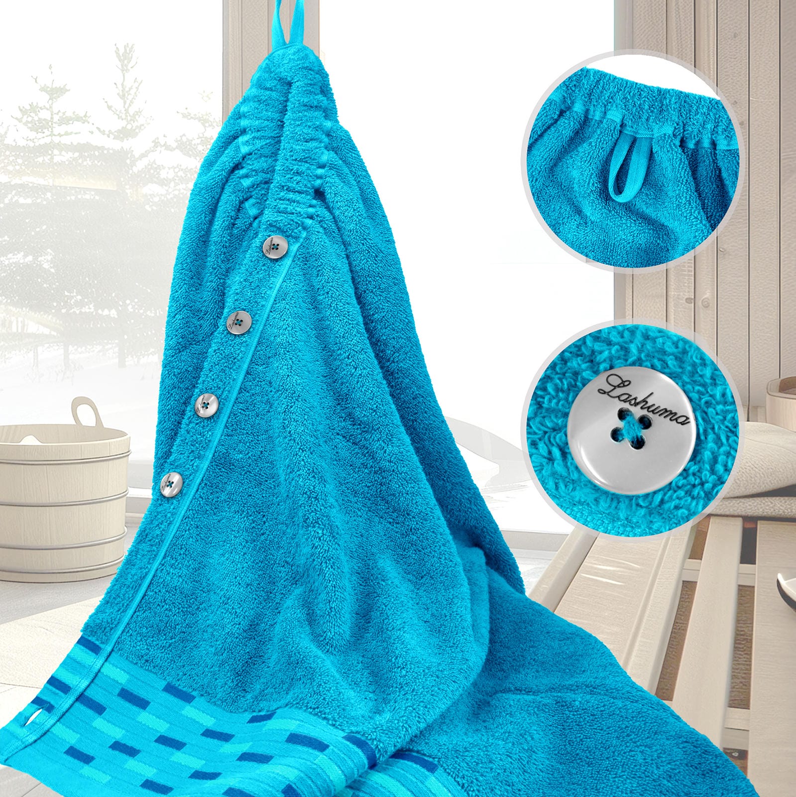 Saunakilt Damen 75x150 cm, Lugano Saunahandtuch mit Knöpfen Blau - Aquamarin