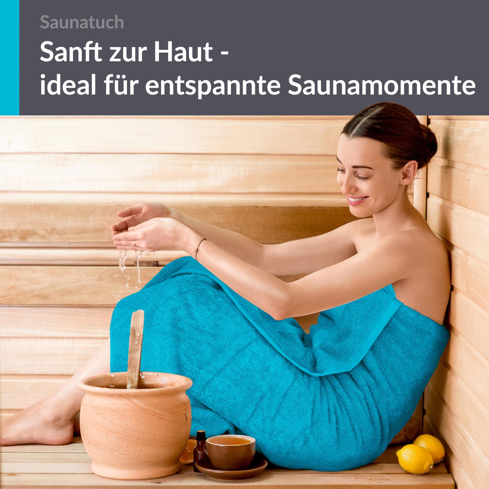 Ein kuscheliges Sauna Badetuch zum puren Entspannen! Mit diesem Baumwoll Saunalaken in Aquamarin Blau lassen Sie Alltagsstress hinter sich!