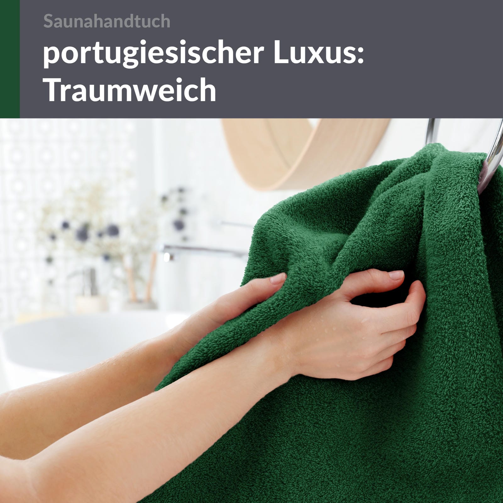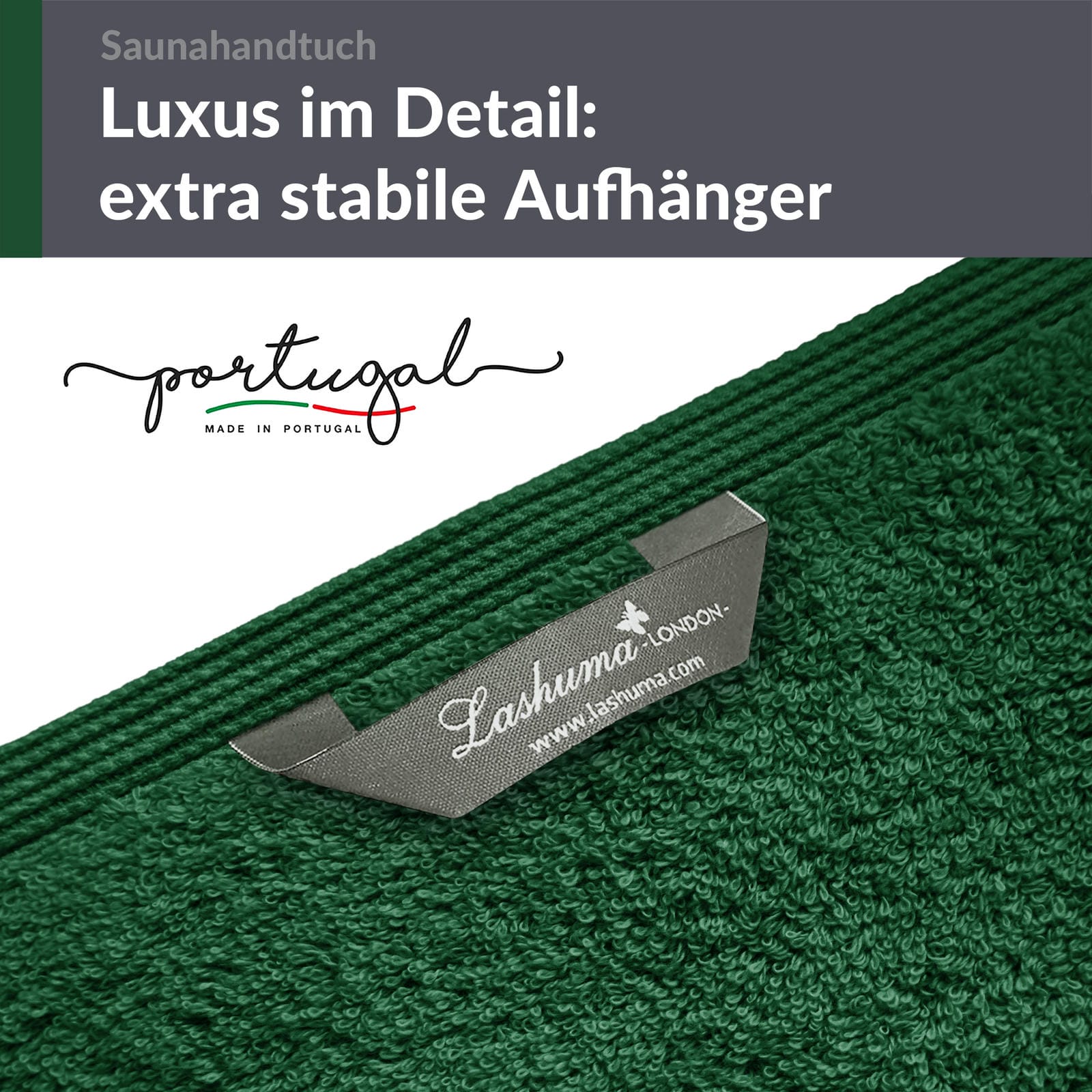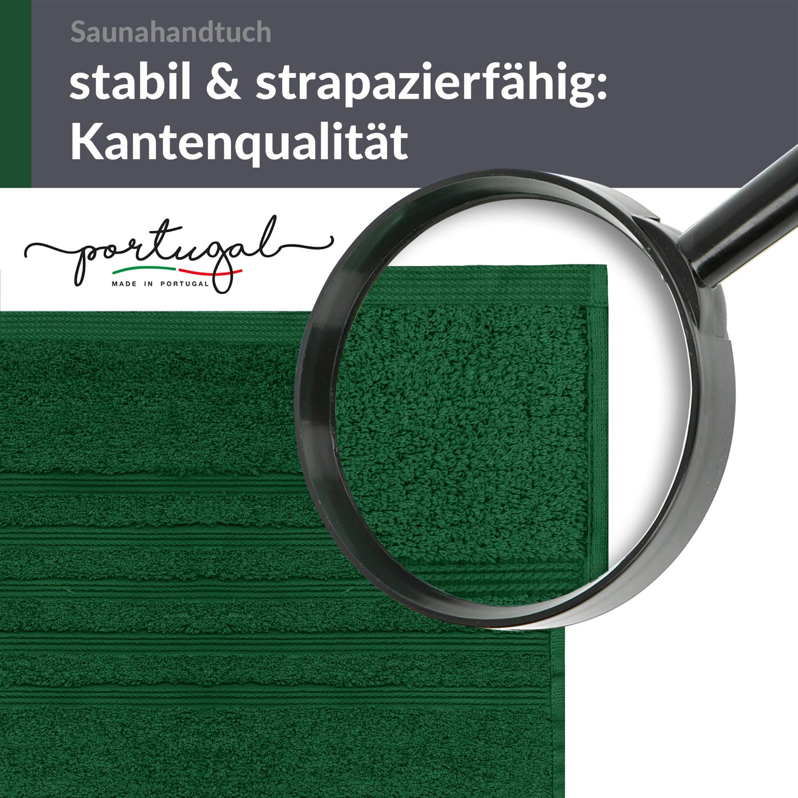PREMIUM QUALITÄT: In Portugal gefertigt, kombiniert das 80x200 cm große Saunahandtuch erstklassige Verarbeitung mit reiner Baumwolle und einer zeitlosen Eleganz, die für entspannende Wellness Momente sorgt.