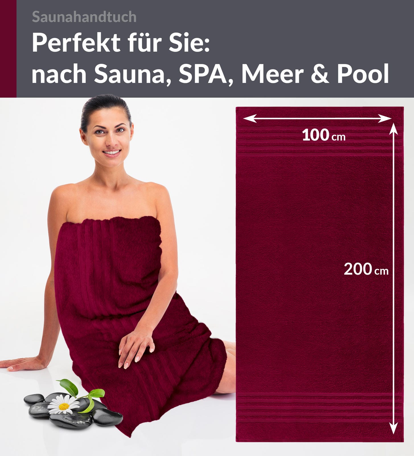 LUXURIÖSES AUSSEHEN: Dieses Saunahandtuch Dame 100x200 cm Kirschrot bringt eine lebendige Eleganz in Ihren Wellnessbereic