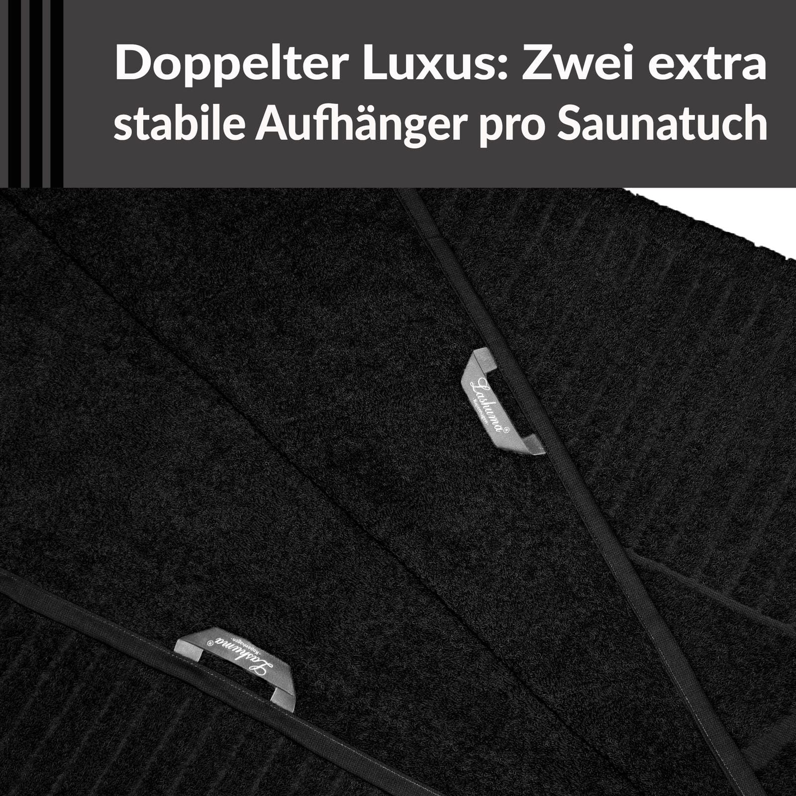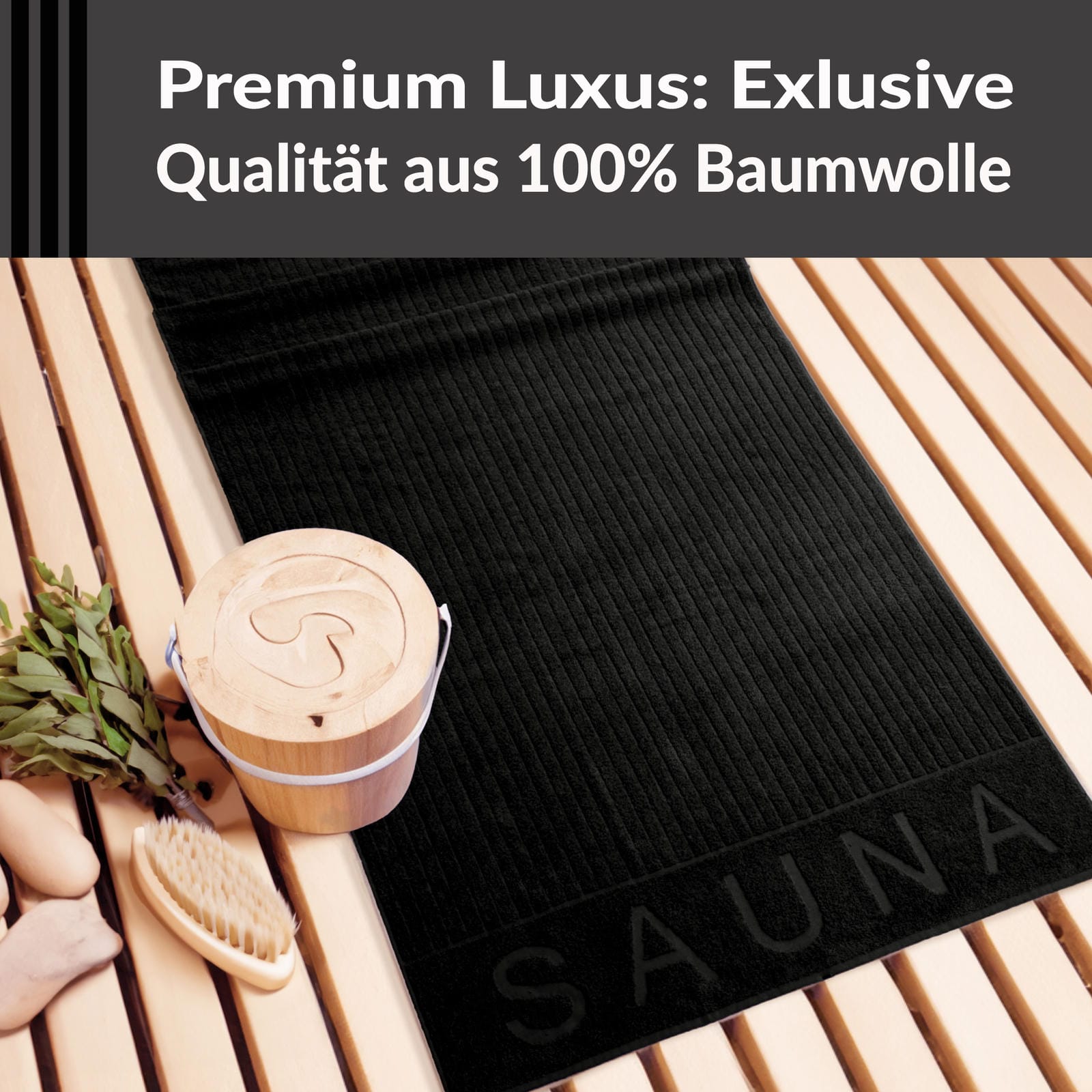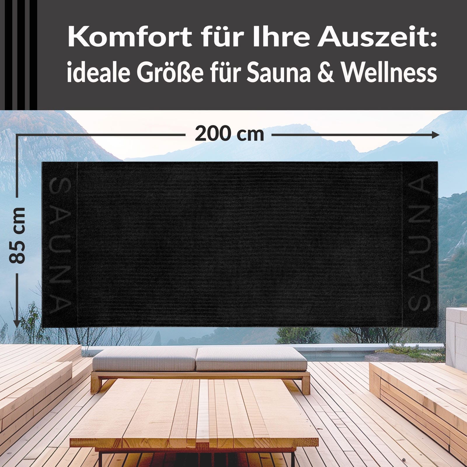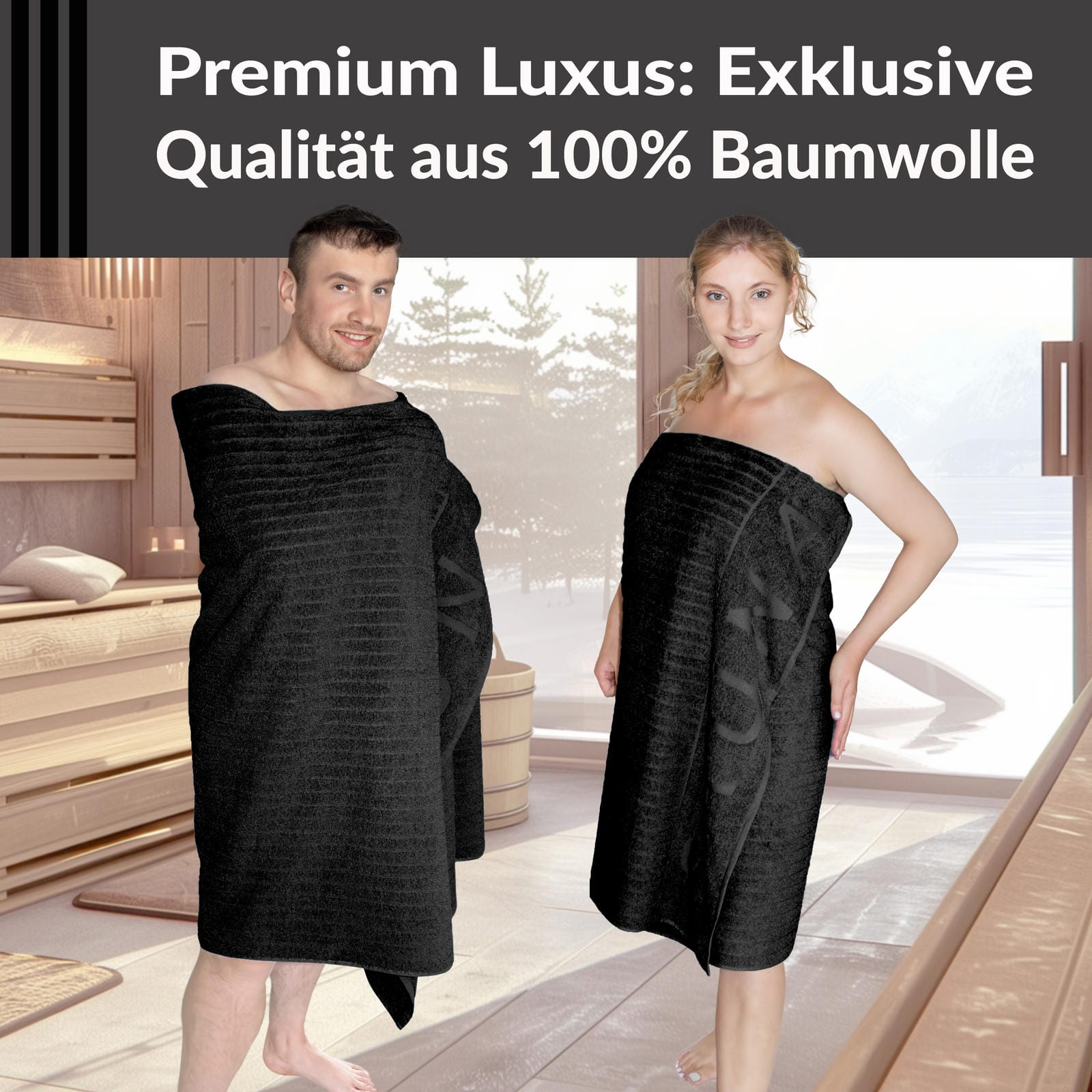 Edles Saunatuch 80x200 cm in Schwarz - für Männer, die Entspannung mit Stil verbinden möchten. Ob in der Sauna, im Spa oder auf der Liege - dieses große Sauna-Handtuch bietet maximalen Komfort und ist Ihr zuverlässiger Begleiter bei jedem Wellnessmoment