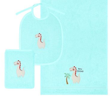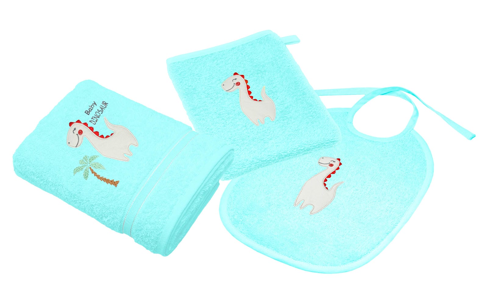 3er Set Baby Geschenkset für Mädchen und Jungen bestickt mit Dinosaurier - Blau