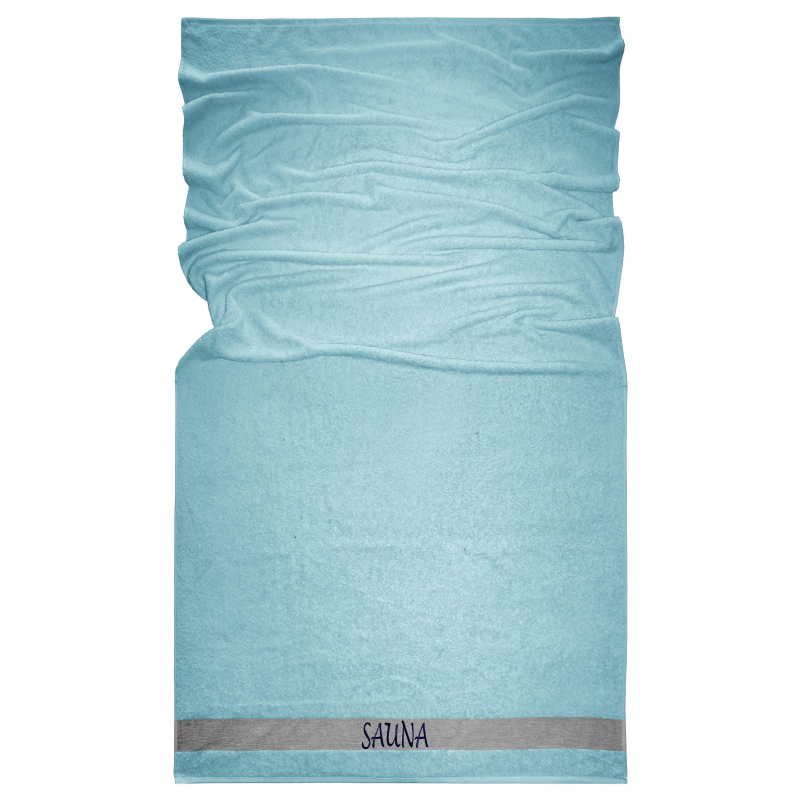 Direkt zum Einkuscheln nach Sauna, Bad und Dusche: Das großzügige Saunahandtuch 100x200 cm in Pastell Blau bietet ausreichend Platz zum Einhüllen und sorgt für wohlige Wärme. - perfektes Saunatuch für Damen und Herren.