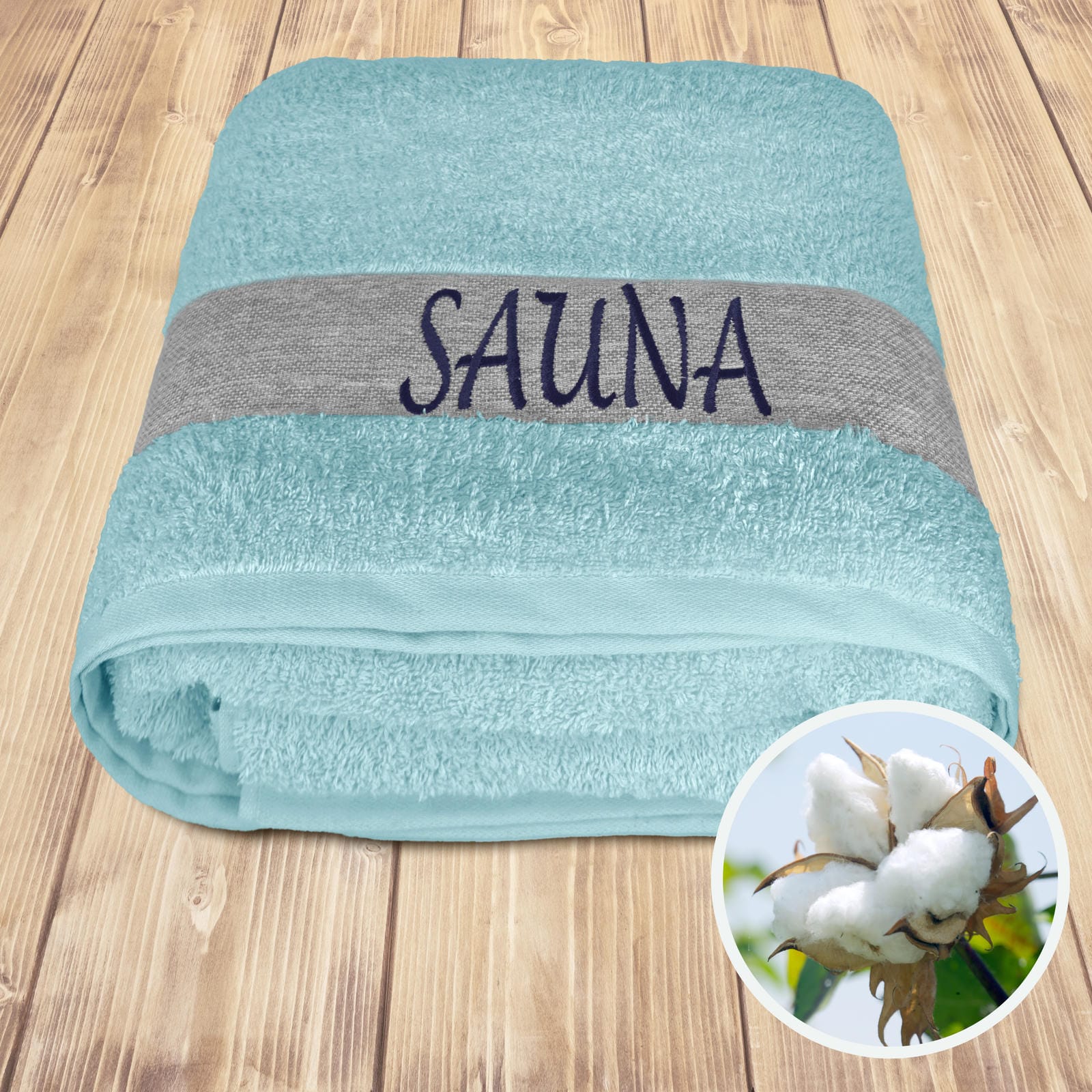Edle „Sauna“ Stickerei für einen stilvollen Look: Die dezente Stickerei verleiht dem großen Badehandtuch 200x100 cm eine elegante Optik, perfekt für entspannende Wellnessmomente und passend für Frauen und Männer.