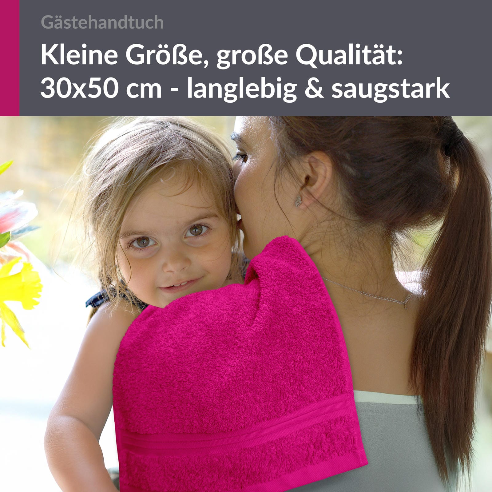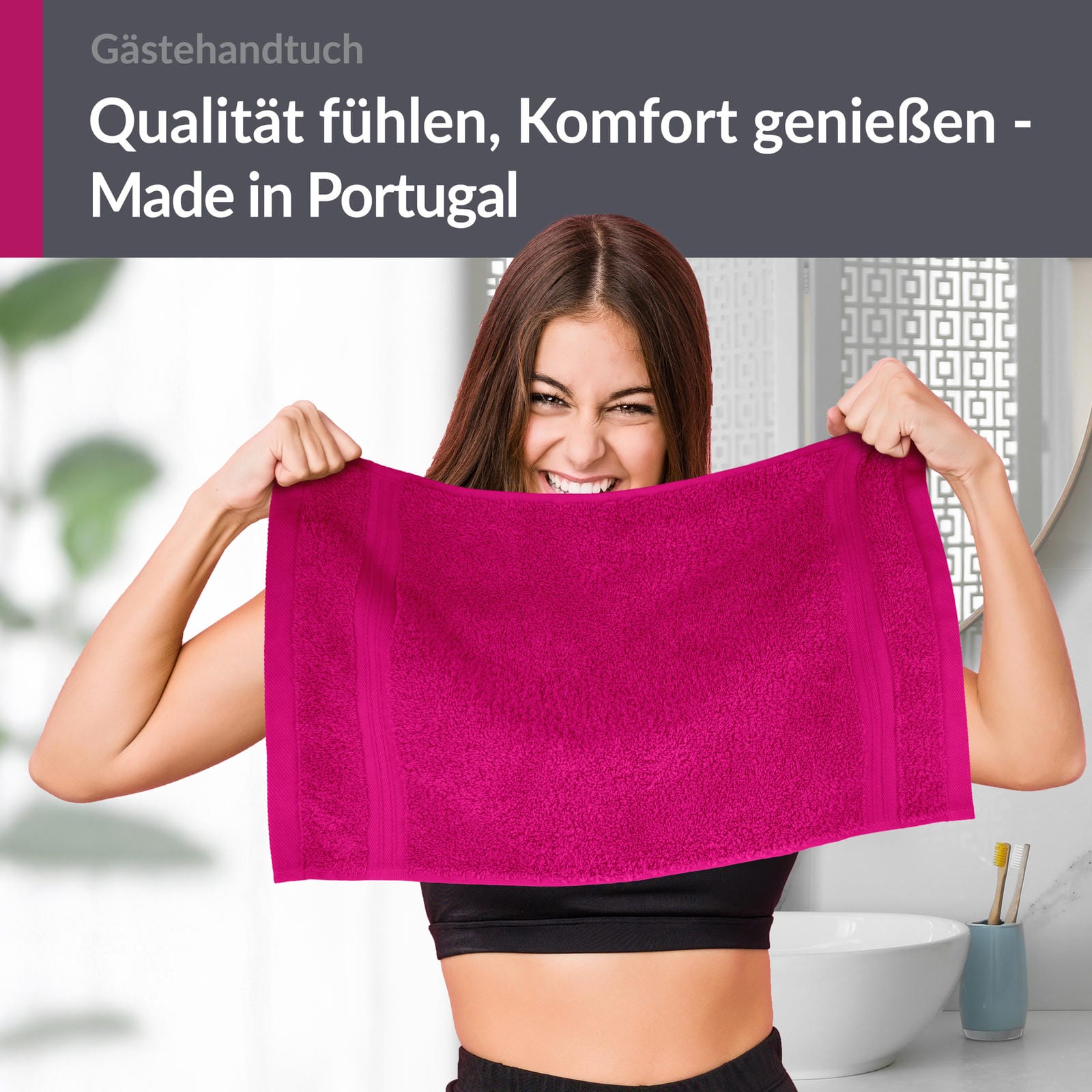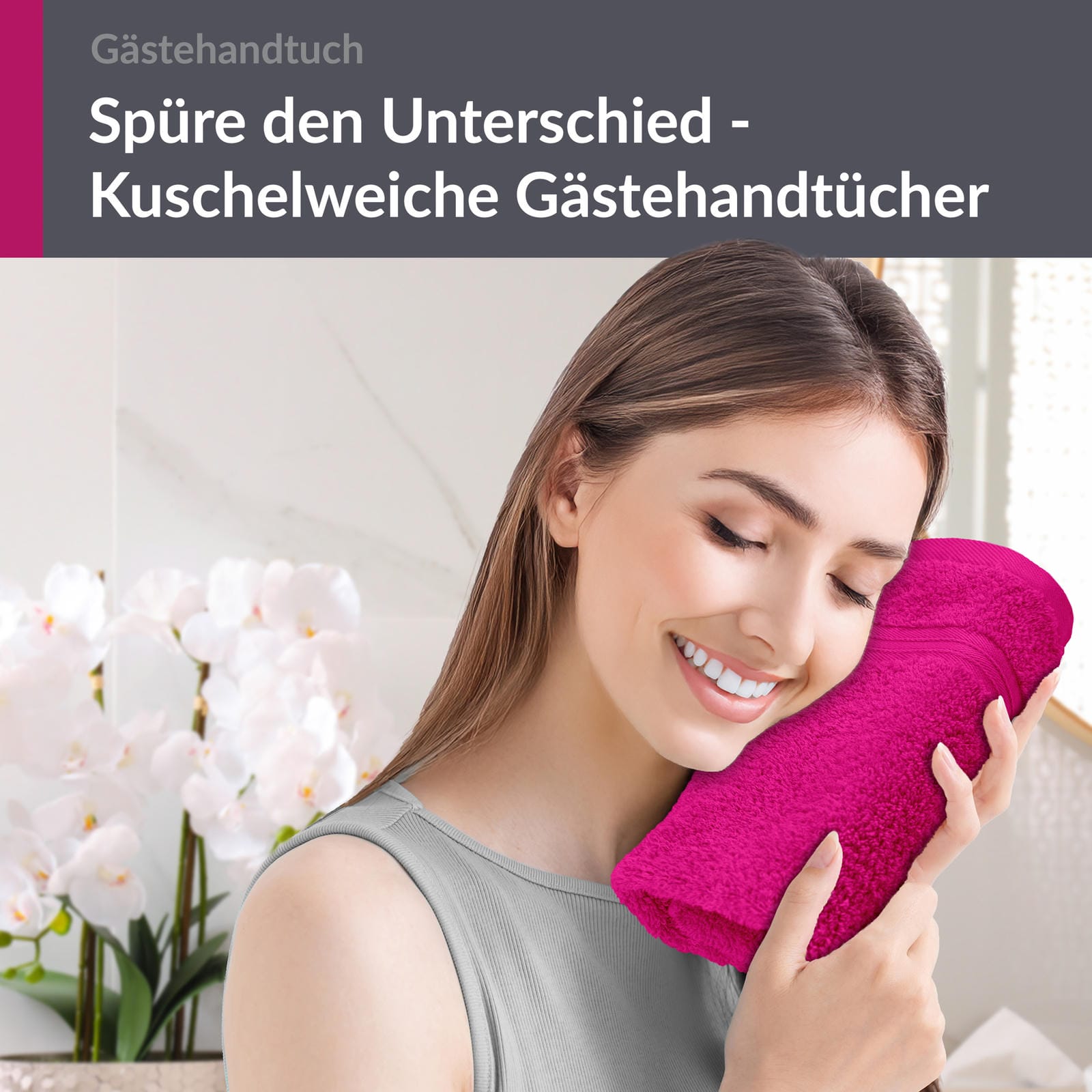 Unser einfarbiges Gästehandtuch aus hochwertigem Frottee umschmeichelt sanft Ihre Haut. Mit einer Qualität von 550 g/qm sorgt dieses strapazierfähige Handtuch für eine schnelle Aufnahme von Feuchtigkeit.