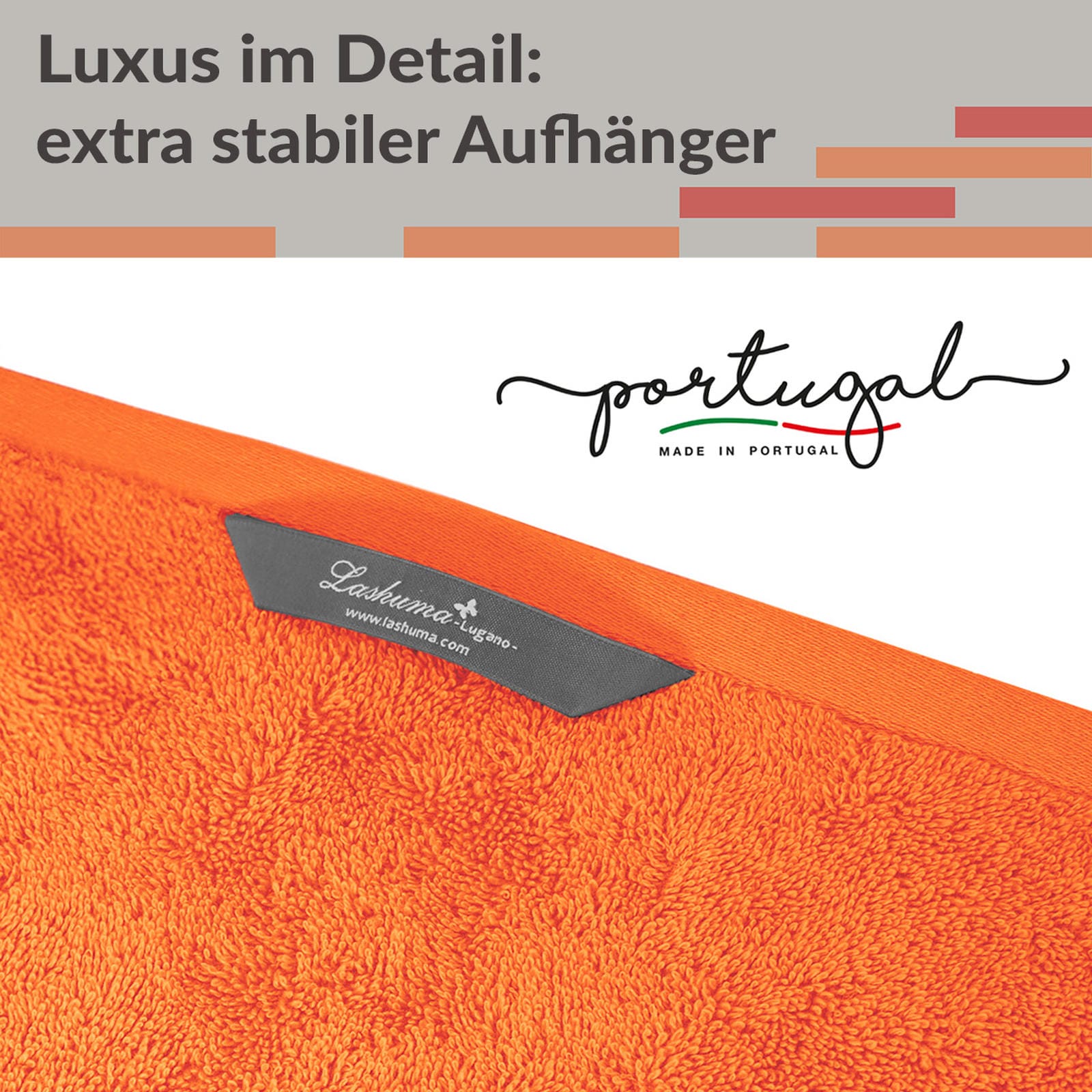 In Portugal mit größter Sorgfalt gefertigt, und einem energiegeladenen Design, wird das Lashuma Handtuch-Set ca. 30x50 cm in Orange zu einem Symbol für Luxus und sommerlichen Genuss.
