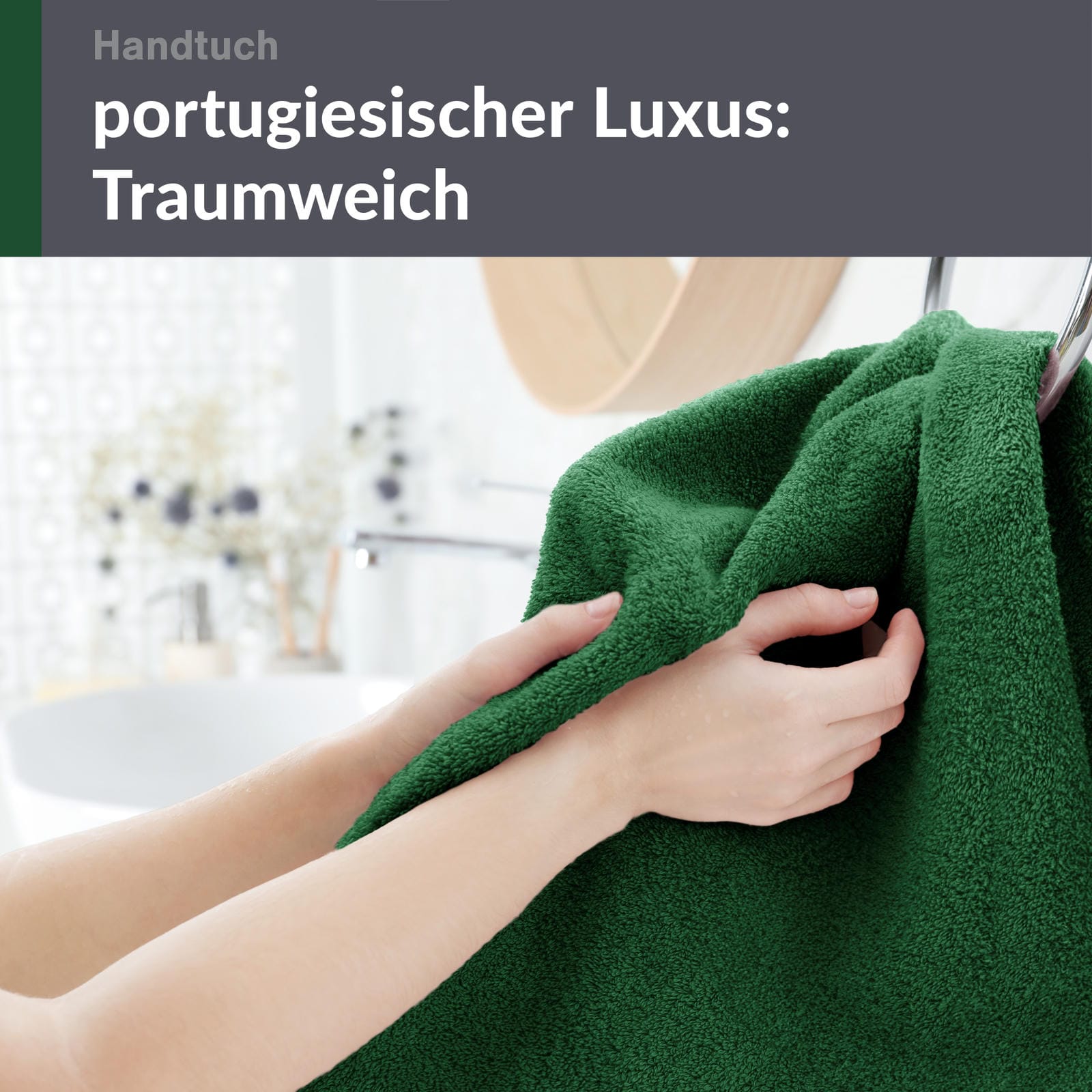 Hergestellt in Portugal, stehen diese Handtücher für exzellente Handwerkskunst und erstklassige Qualität. Sie bleiben auch nach vielen Waschgängen formstabil und weich und behalten ihre intensiven Farben. Dieses Set ist die perfekte Kombination aus Funktionalität und Design und eine langlebige Ergänzung für jeden Haushalt.